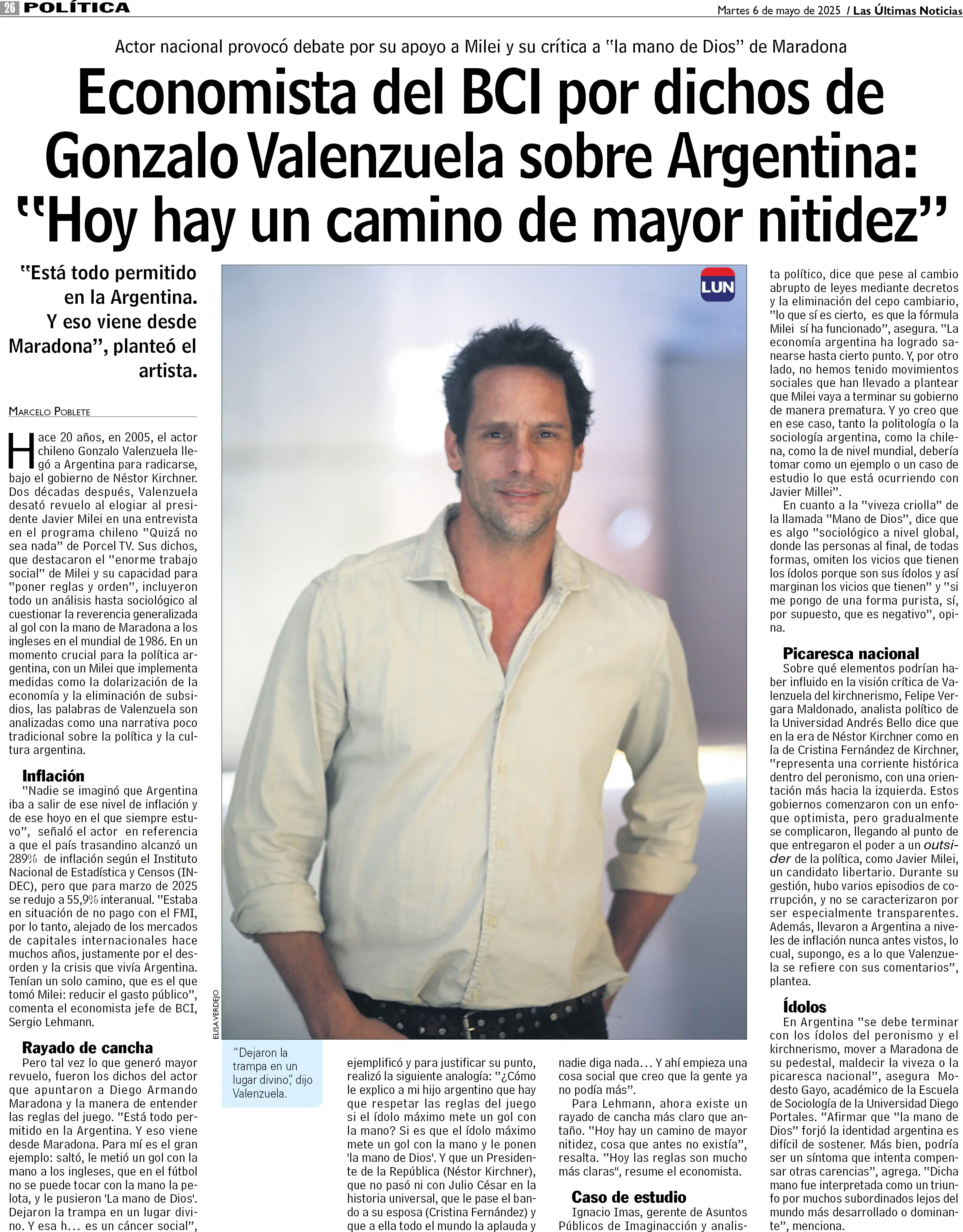 Especialistas comentan opiniones de Gonzalo Valenzuela sobre crisis argentina