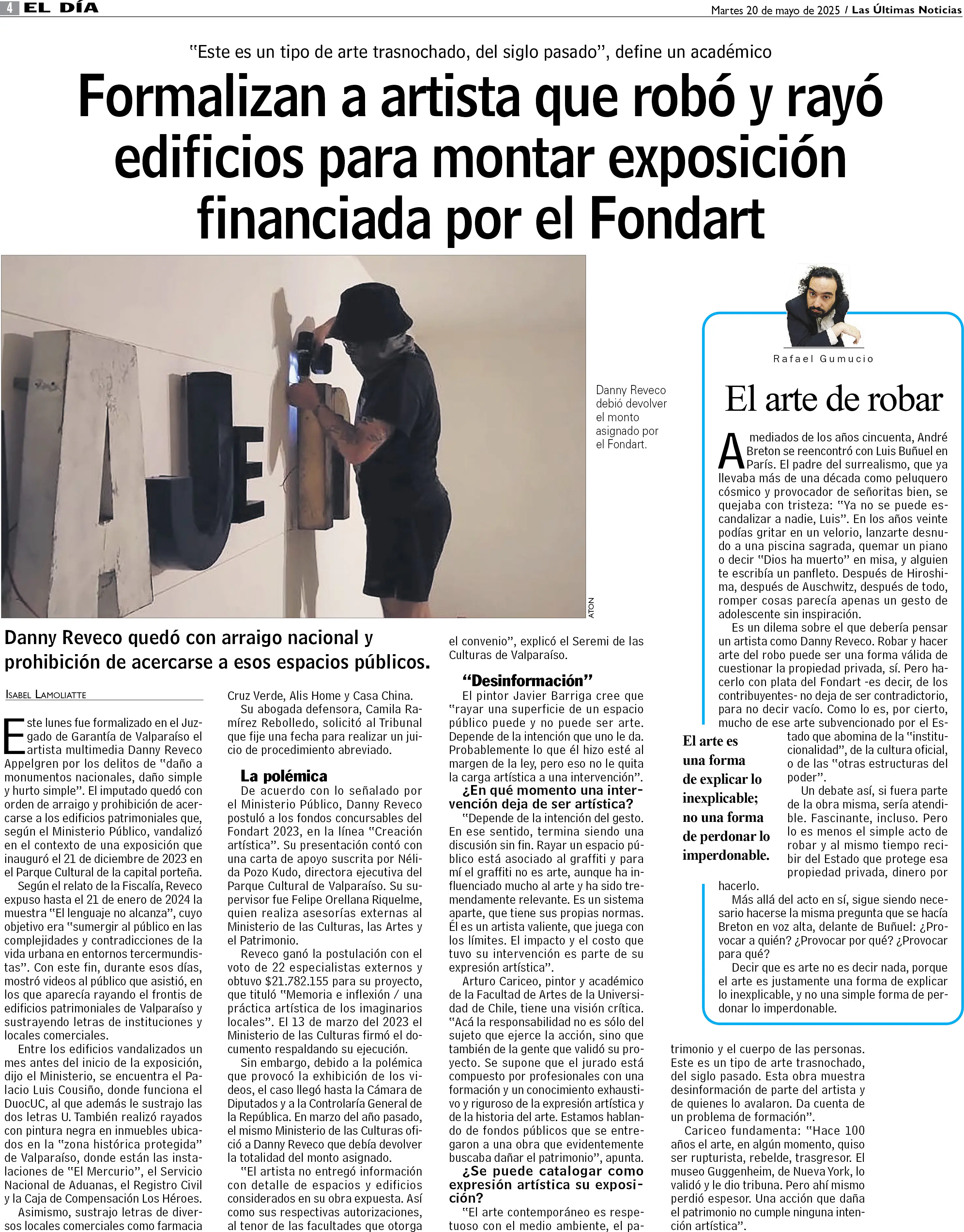 Formalizan a artista que robó y rayó edificios para montar exposición financiada por el Fondart