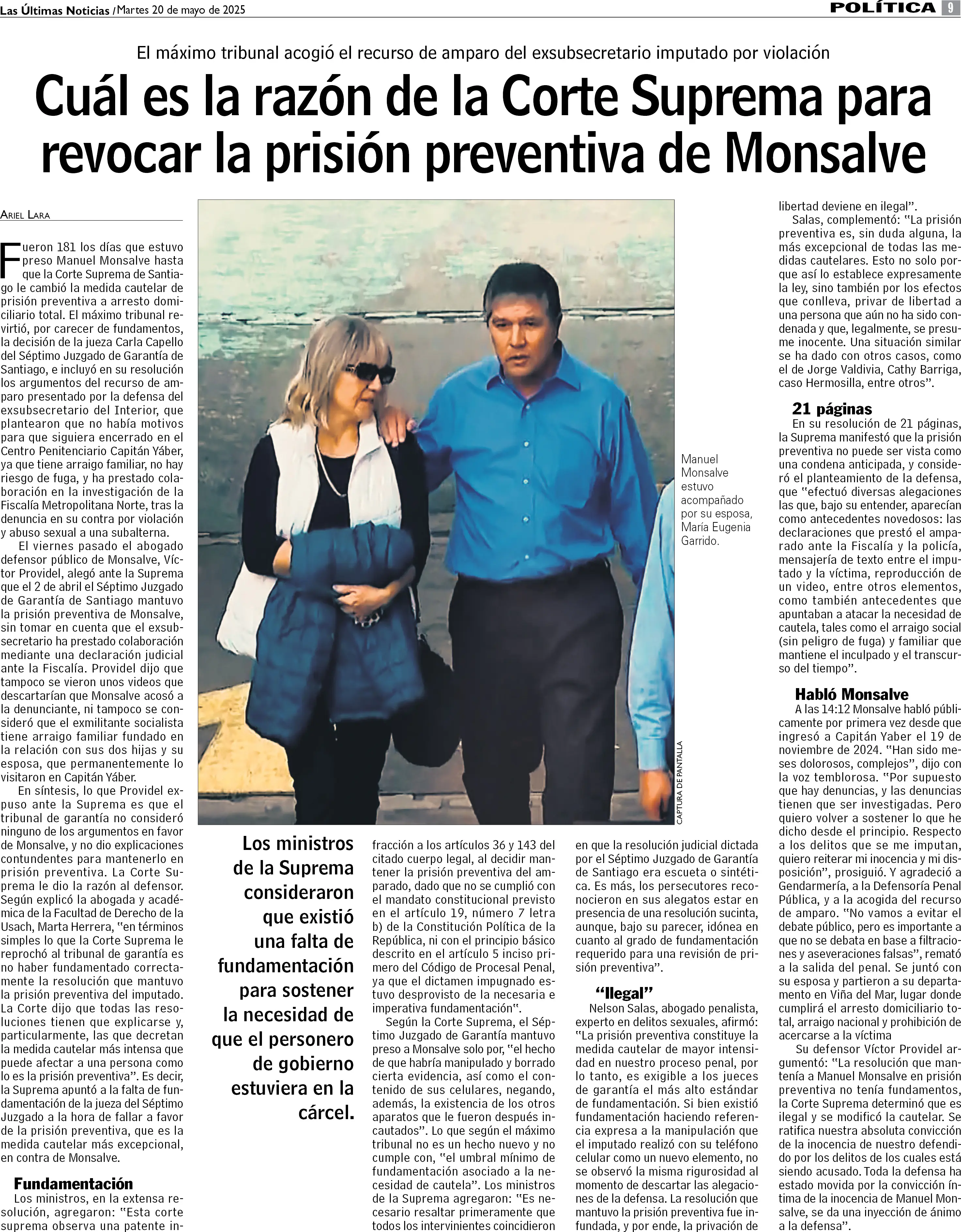 Cuál es la razón de la Corte Suprema para revocar la prisión preventiva de Monsalve