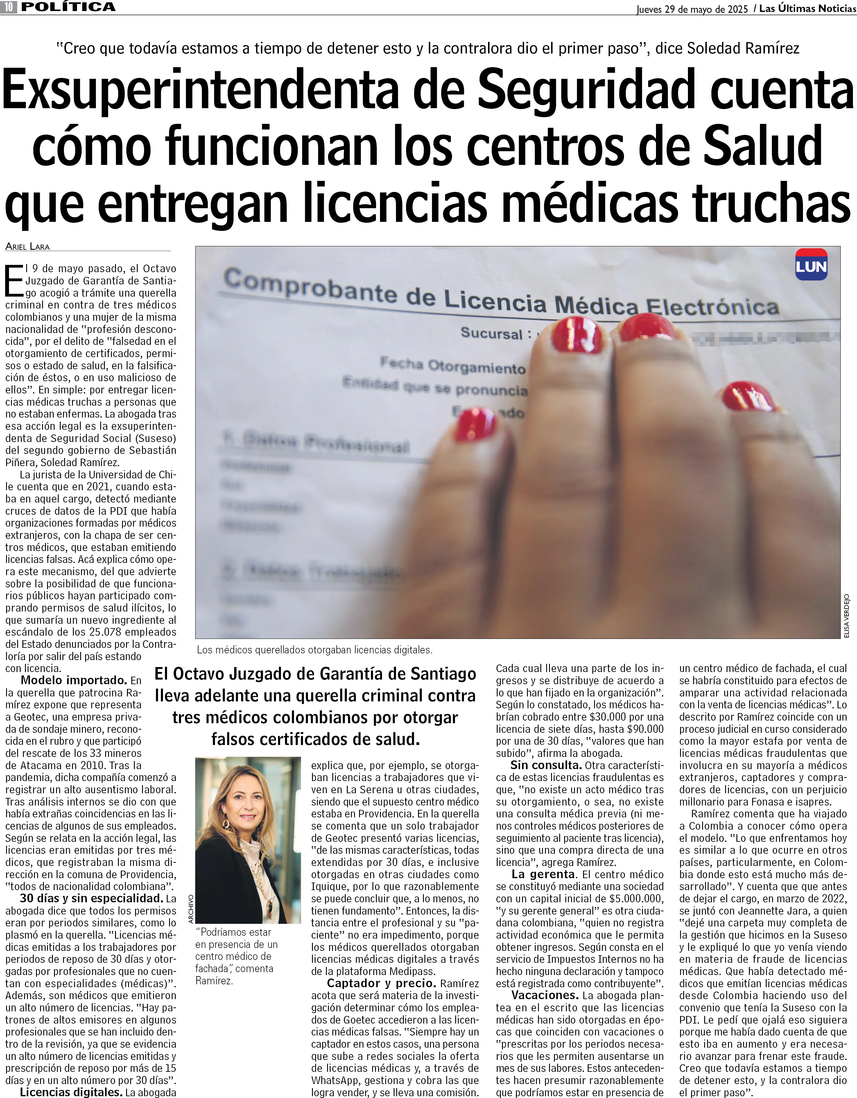 Exsuperintendenta de Seguridad cuenta cómo funcionan los centros de Salud que entregan licencias médicas truchas
