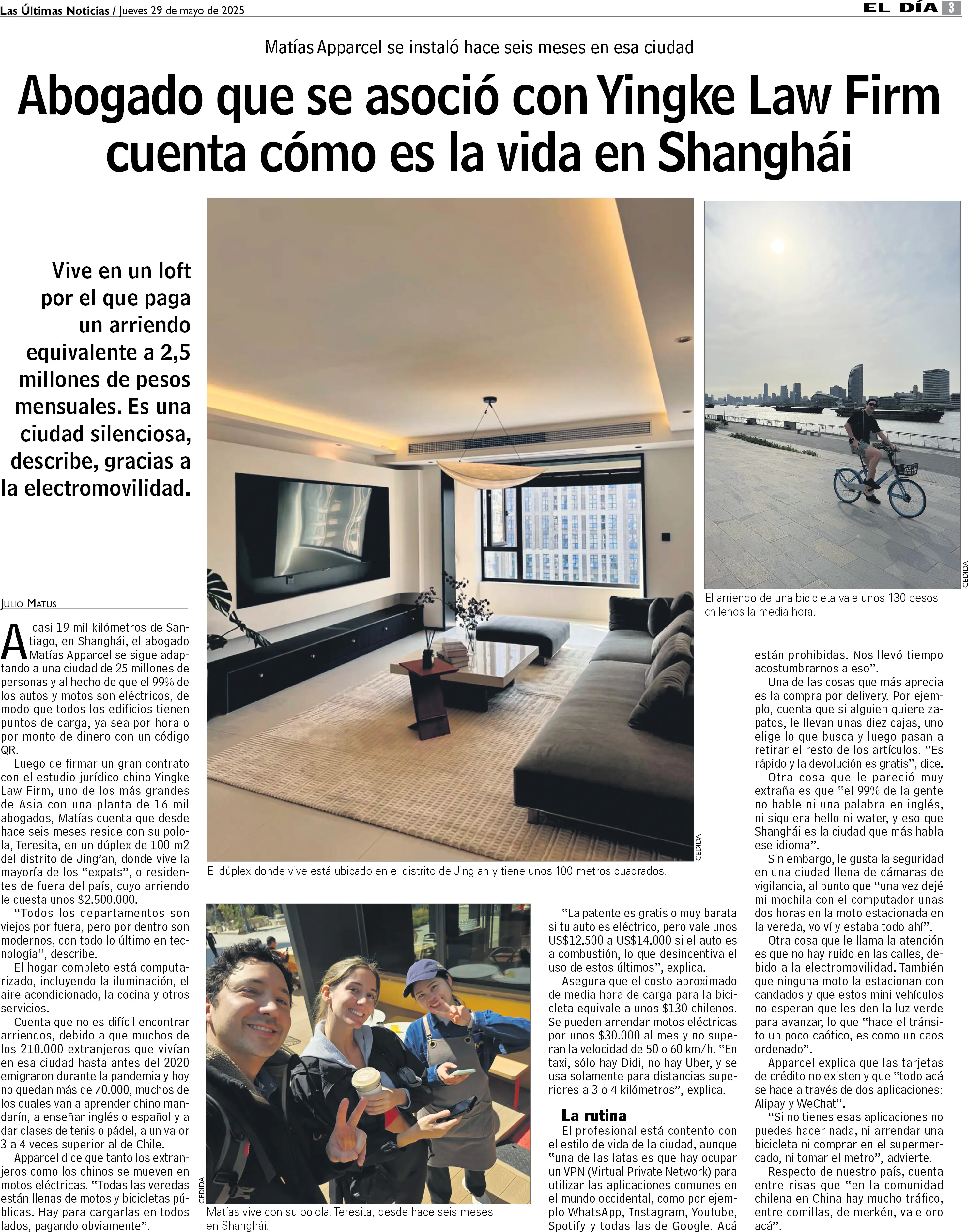Abogado que se asoció con Yingke Law Firm muestra su vida en Shanghái