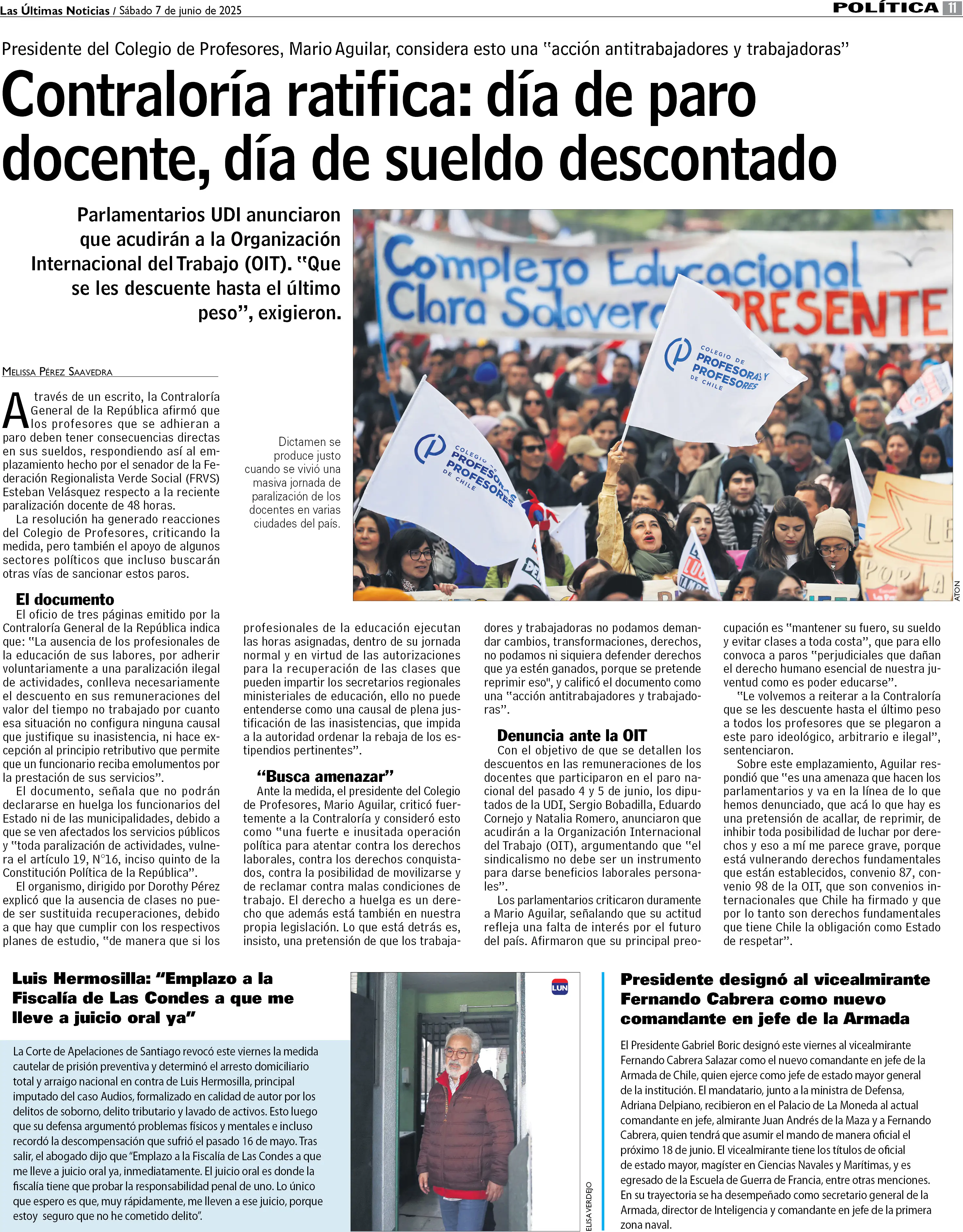 Contraloría ratifica: día de paro docente, día de sueldo descontado