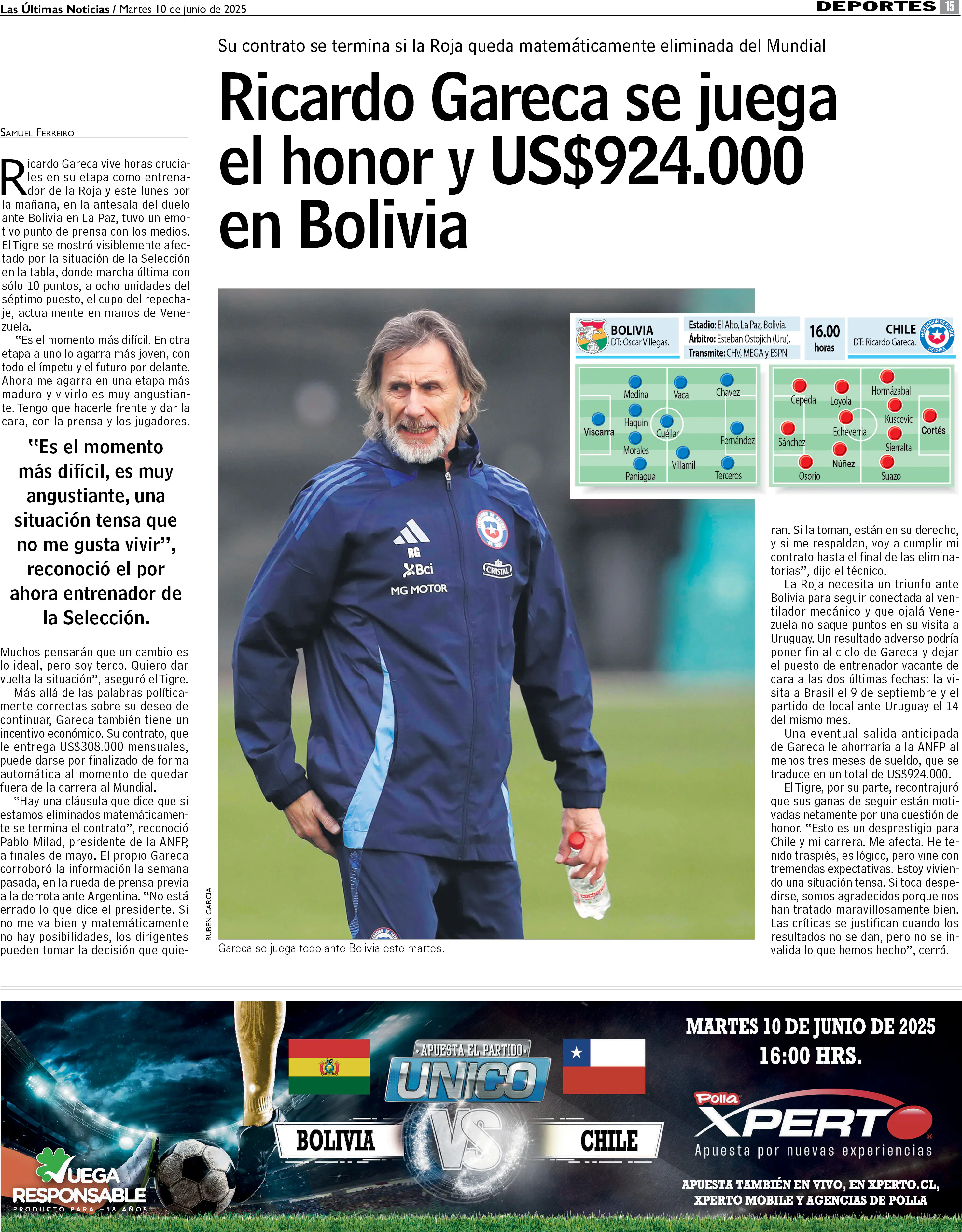 Ricardo Gareca se juega el honor y US$924.000 en Bolivia