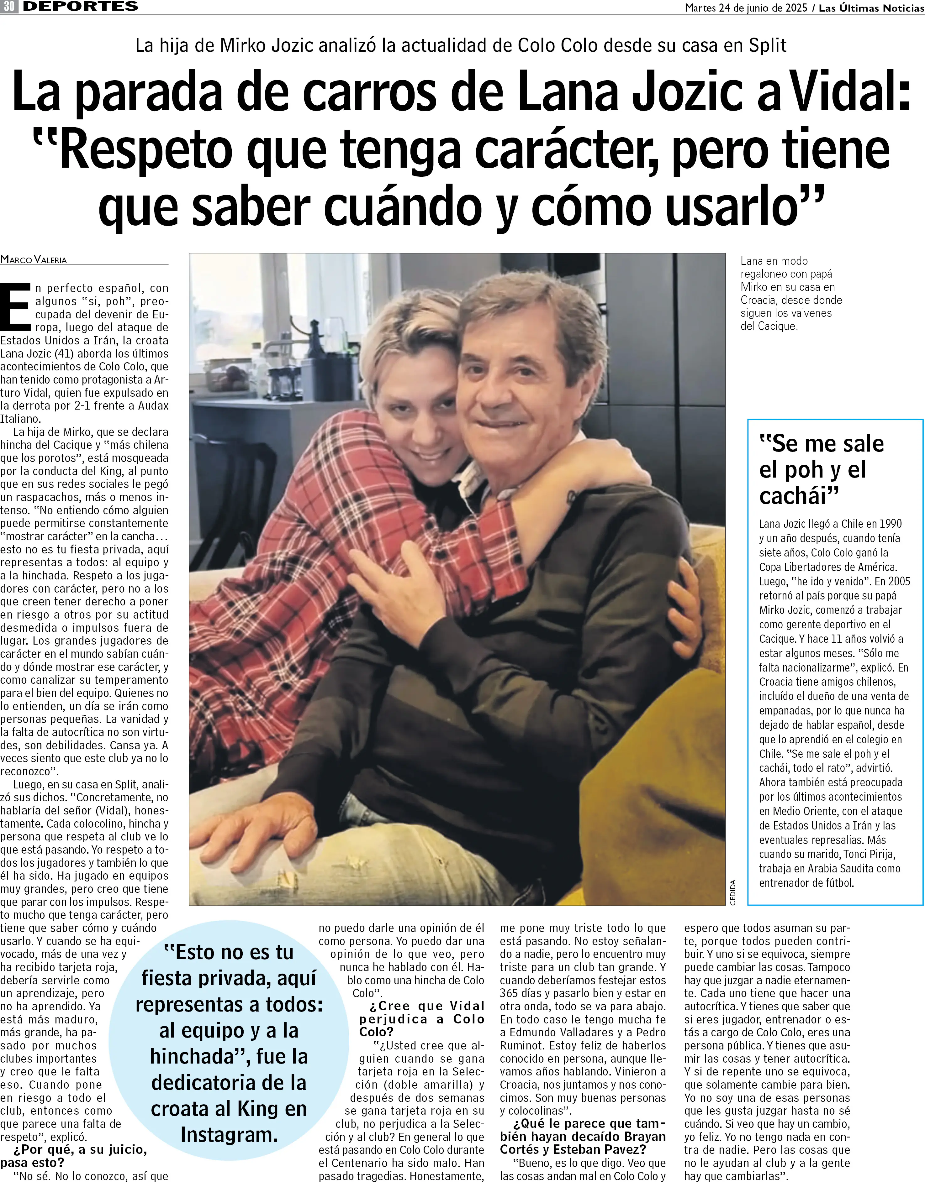 La parada de carros de Lana Jozic a Vidal: "Respeto que tenga carácter, pero tiene que saber cuándo y cómo usarlo"