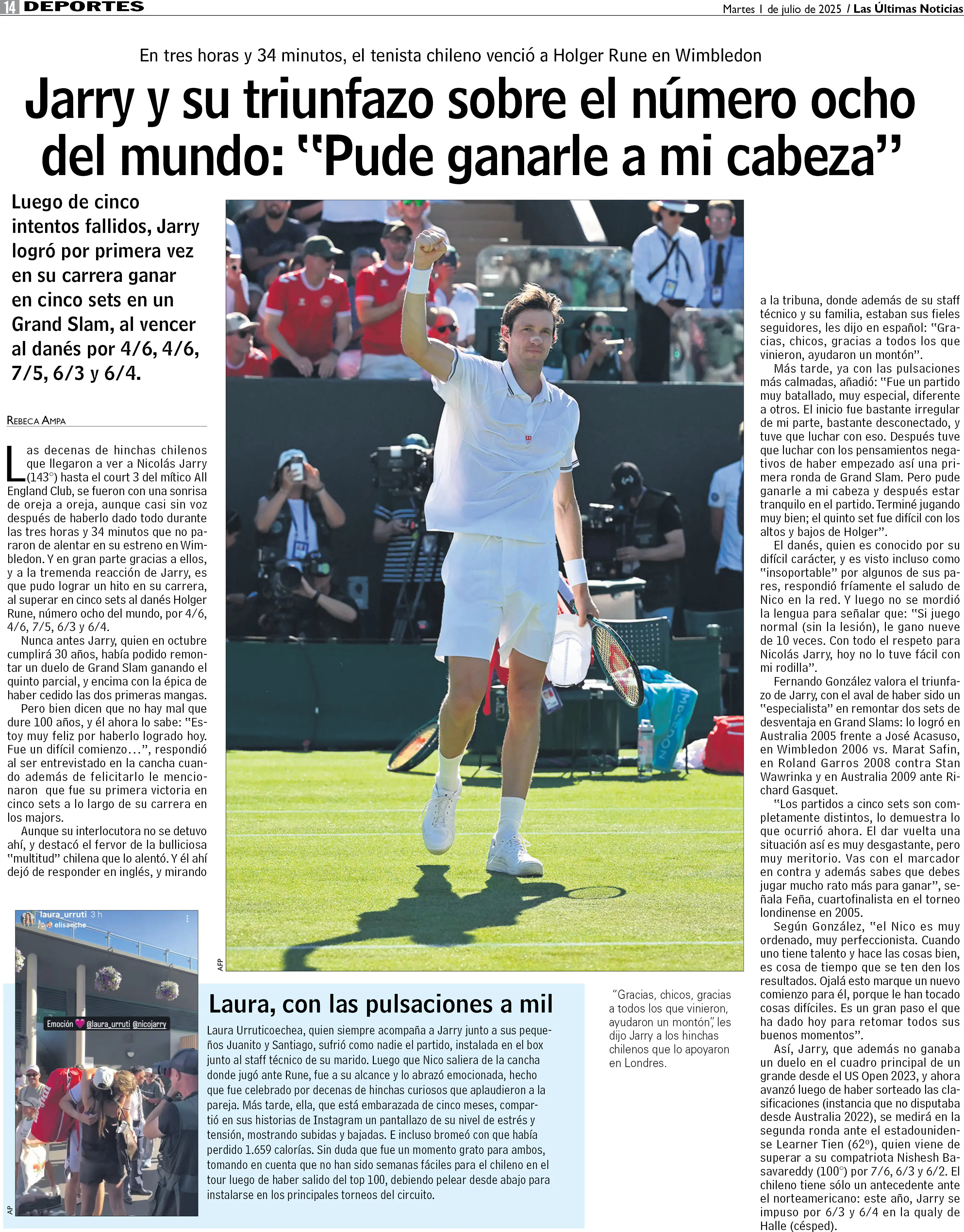 Jarry derrotó al 8 del mundo en Wimbledon: "Pude ganarle a mi cabeza"