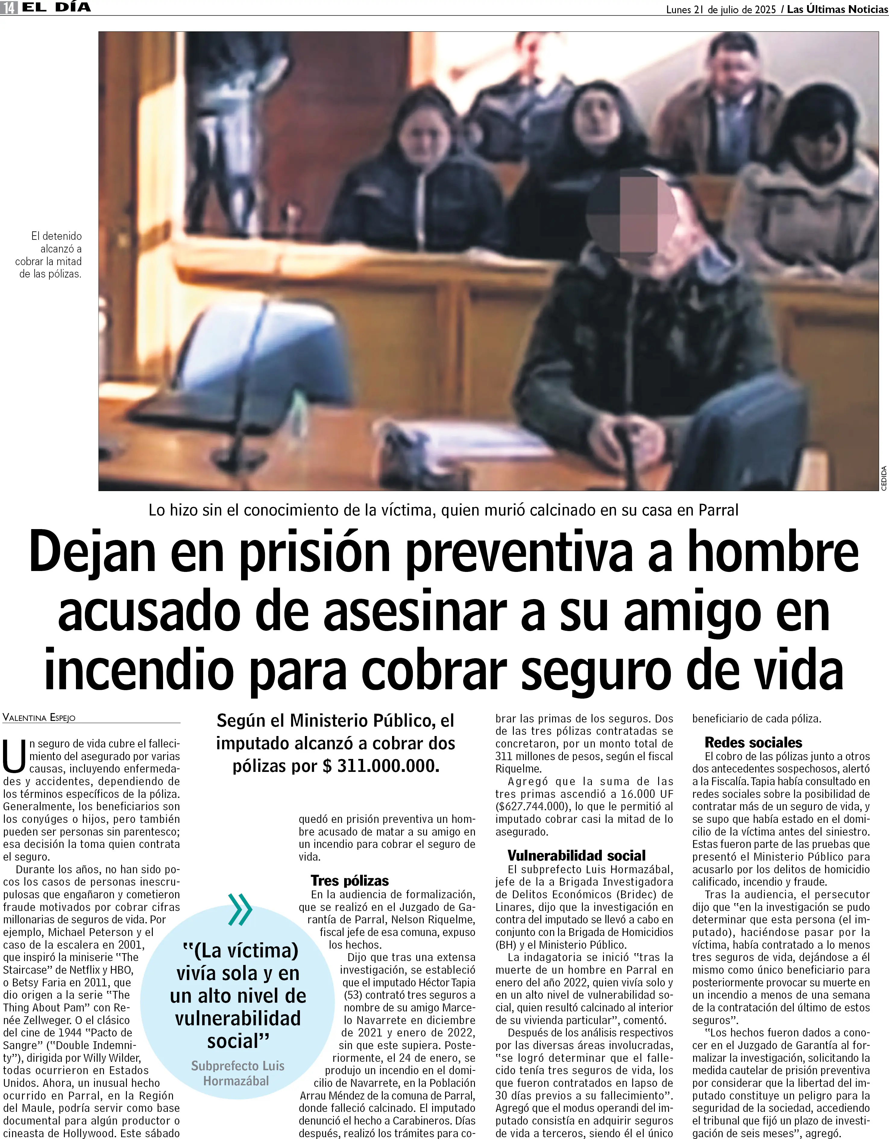 En prisión acusado de eliminar a un amigo para cobrar varios seguros