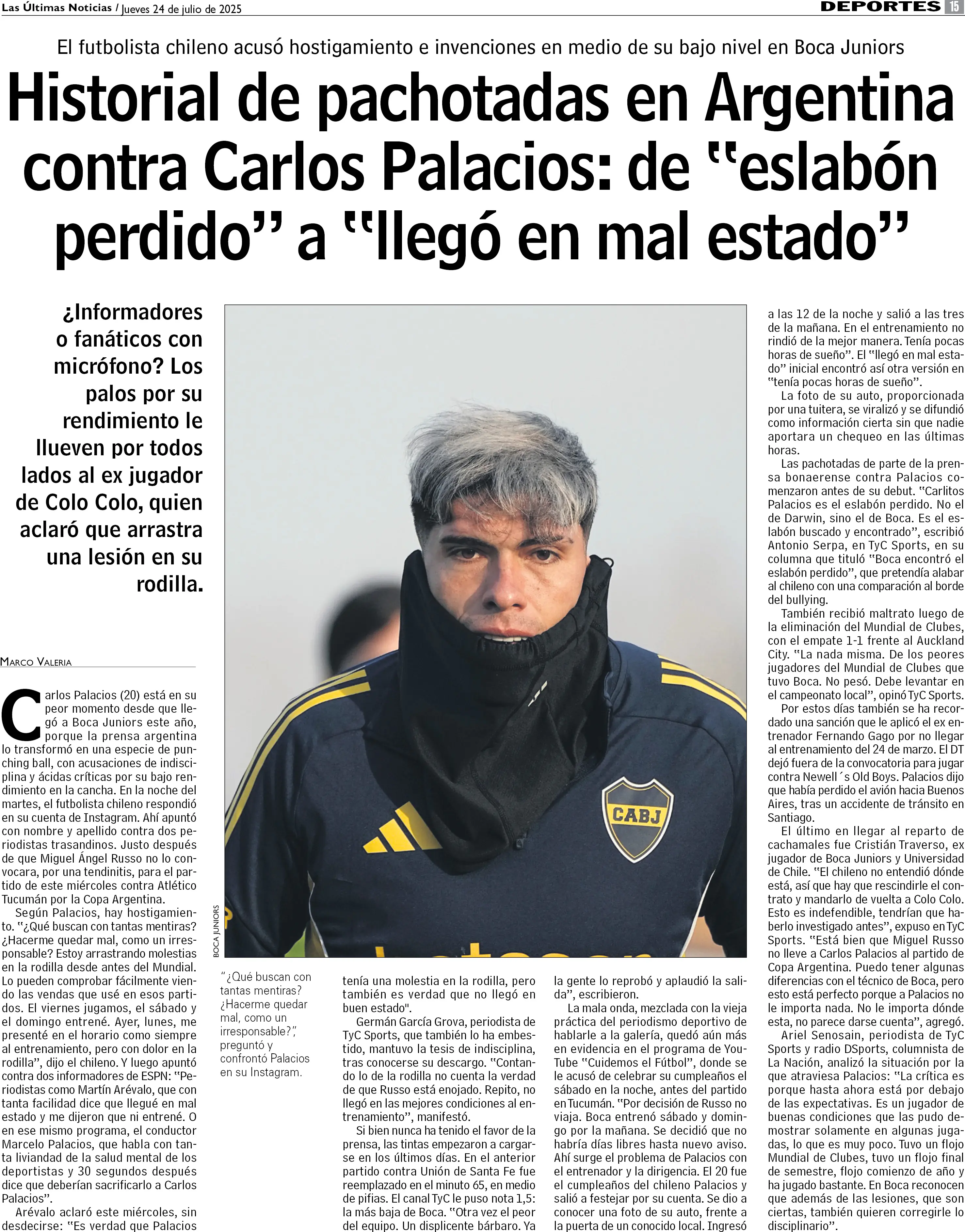 Historial de pachotadas contra Carlos Palacios en Argentina