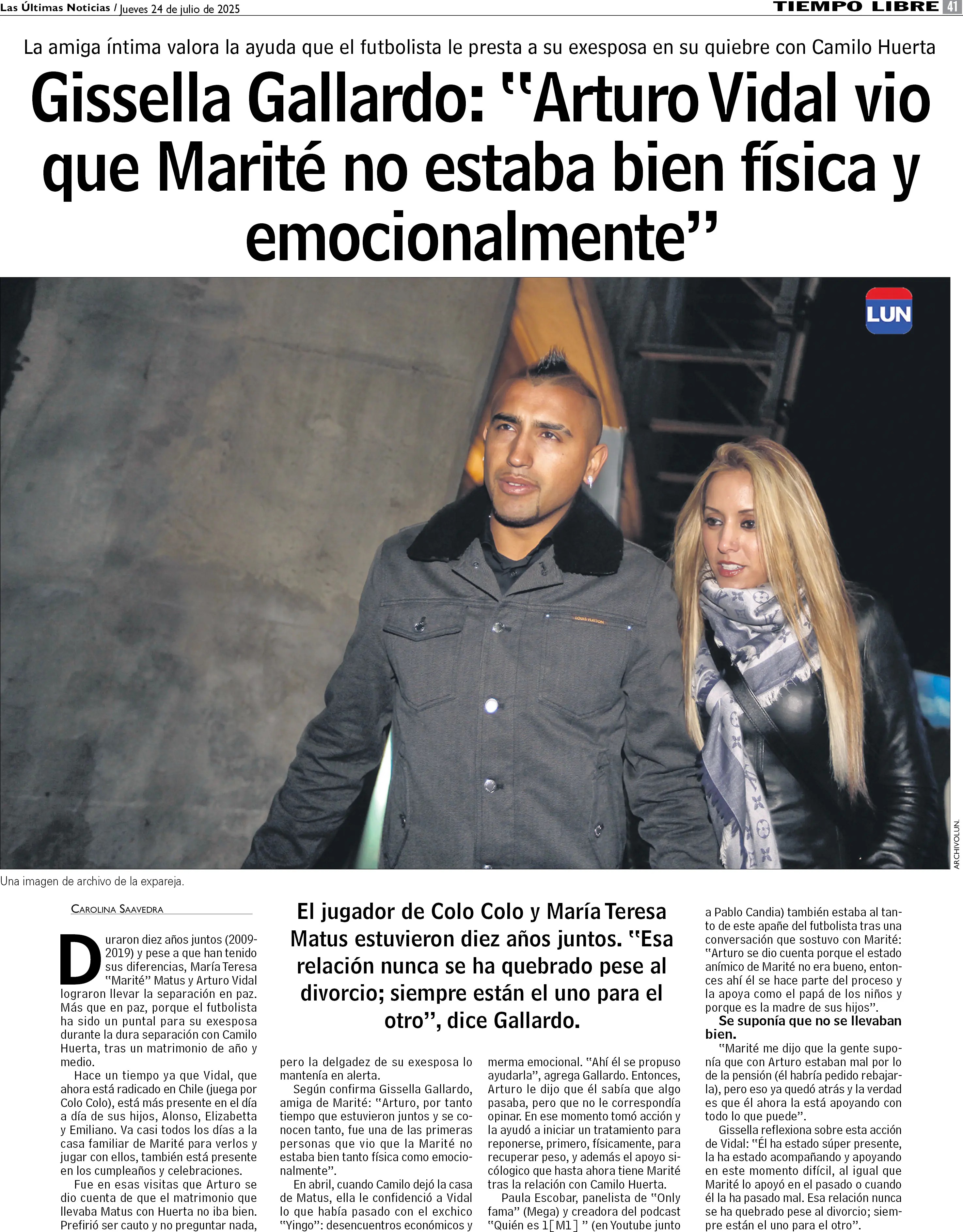 Gissella Gallardo: "Arturo Vidal vio que Marité no estaba bien física y emocionalmente"