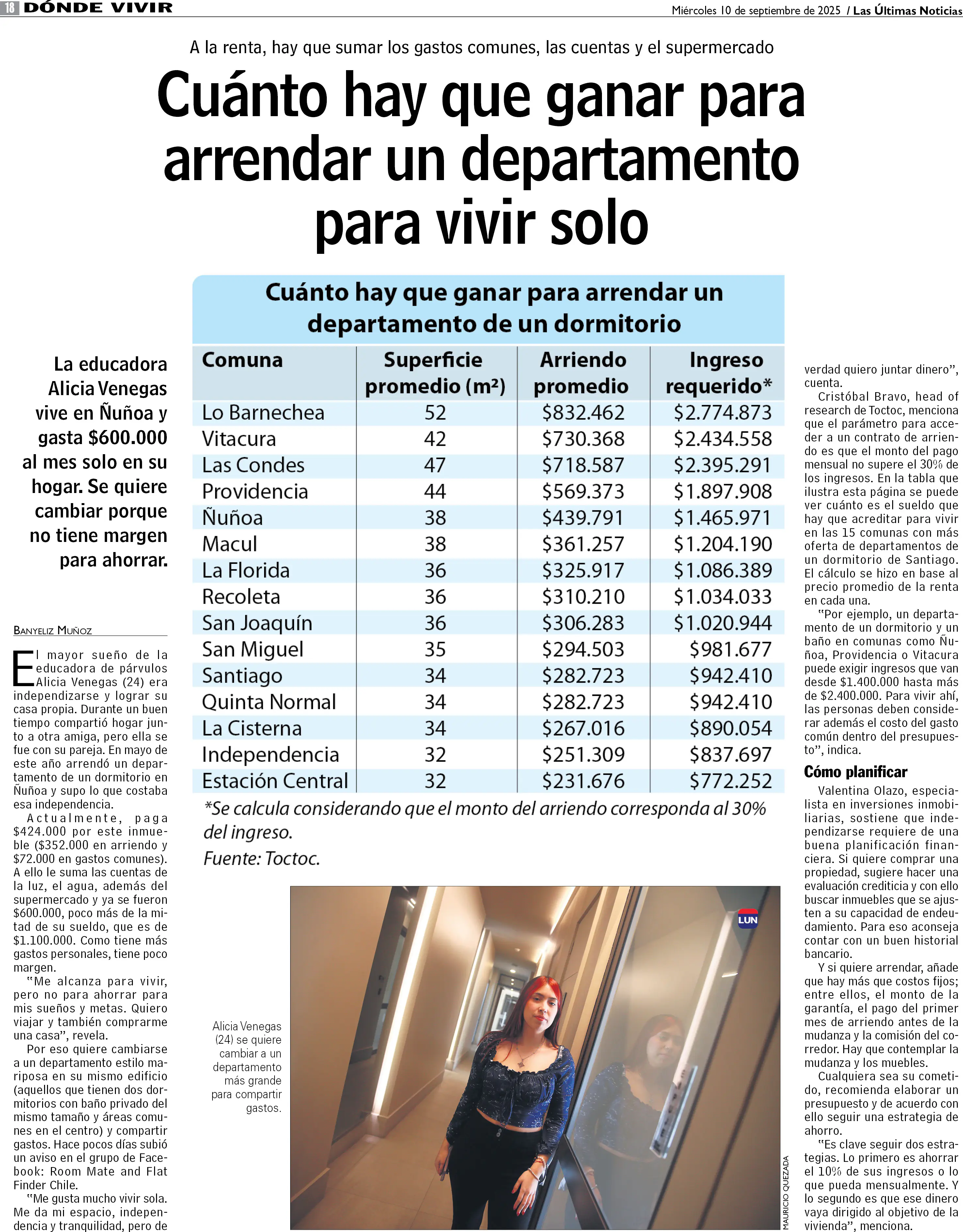 Cuánto hay que ganar para arrendar un departamento para vivir solo