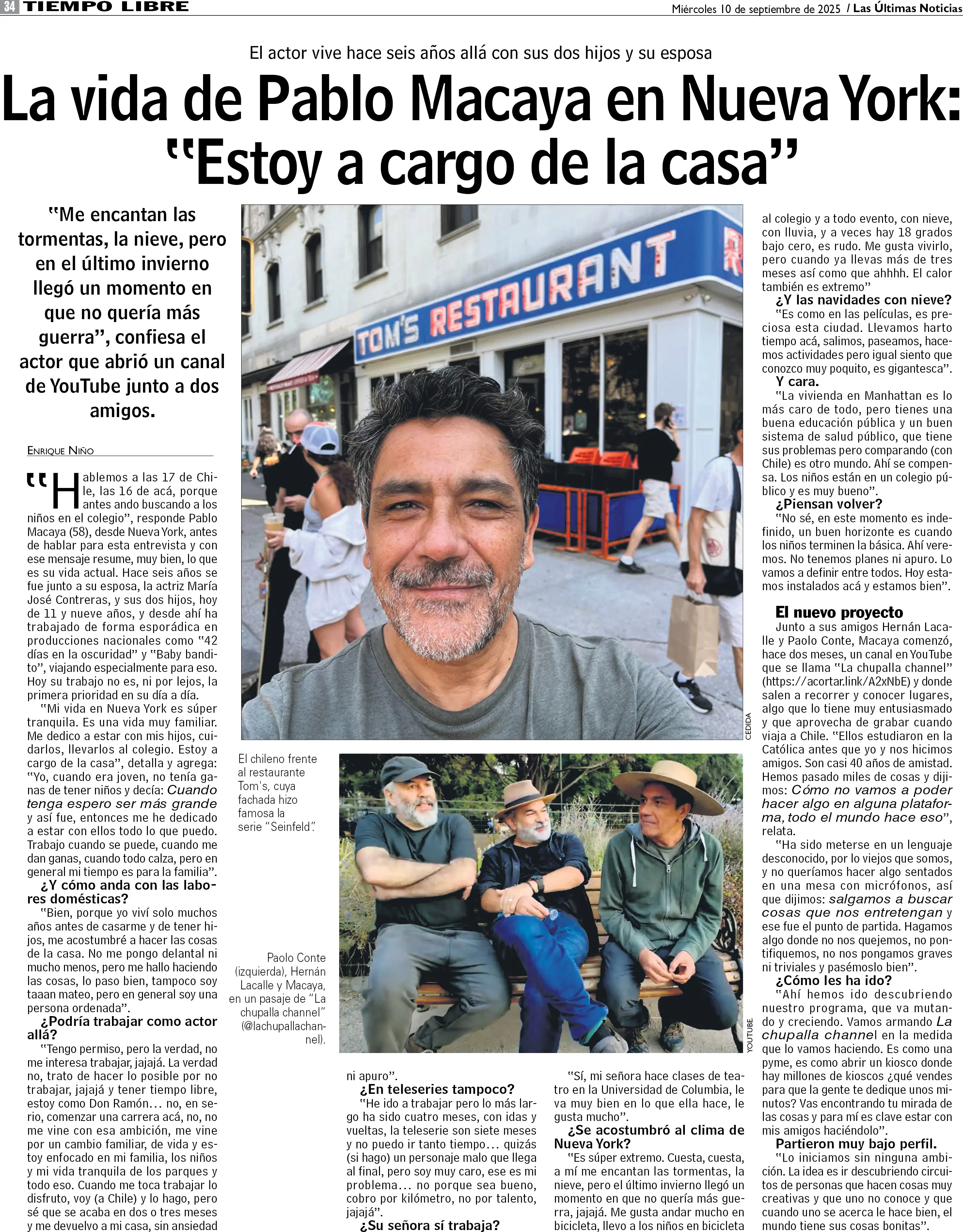 La vida de Pablo Macaya en Nueva York: "Estoy a cargo de la casa"