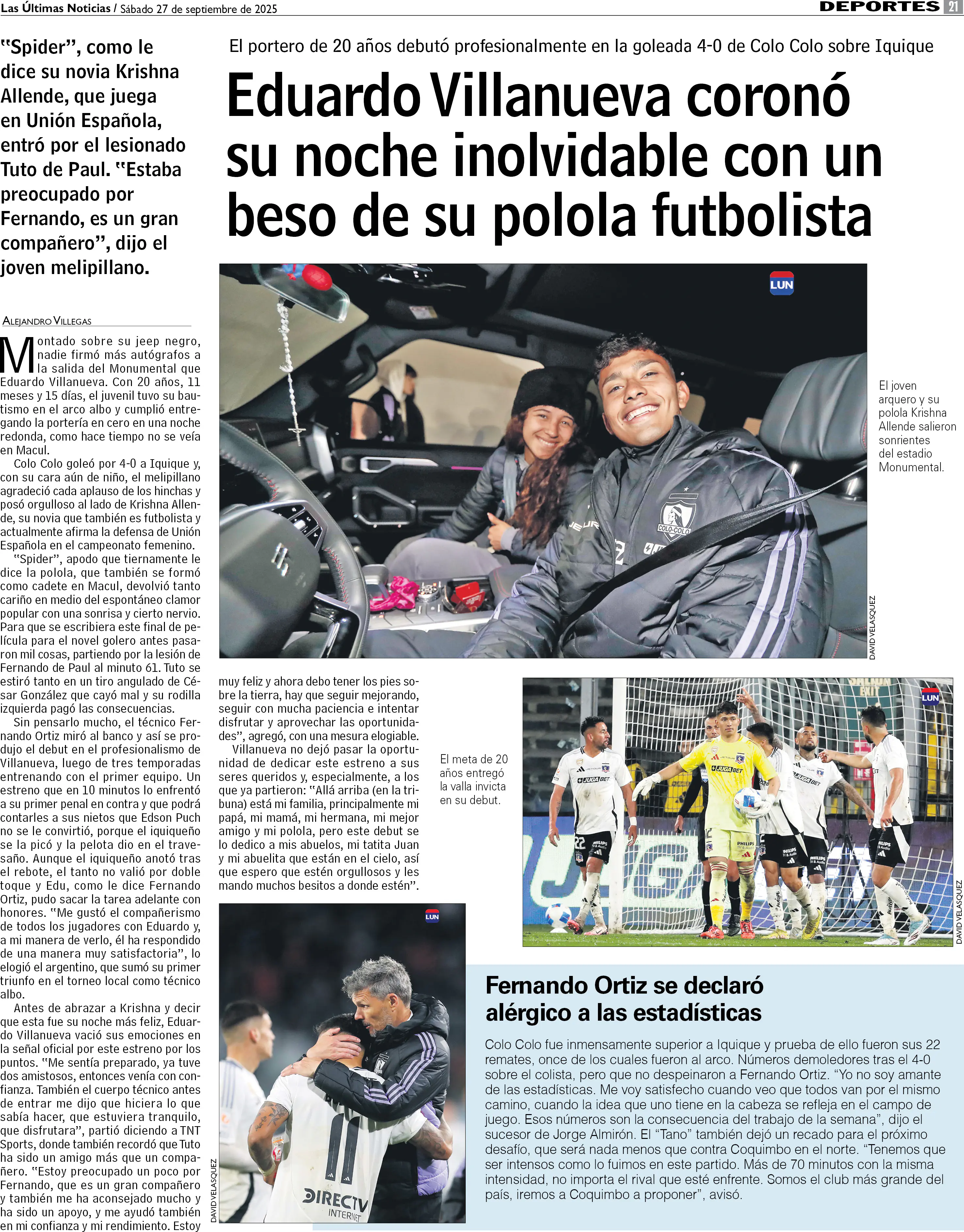 Eduardo Villanueva coronó su noche inolvidable con un beso de su polola futbolista