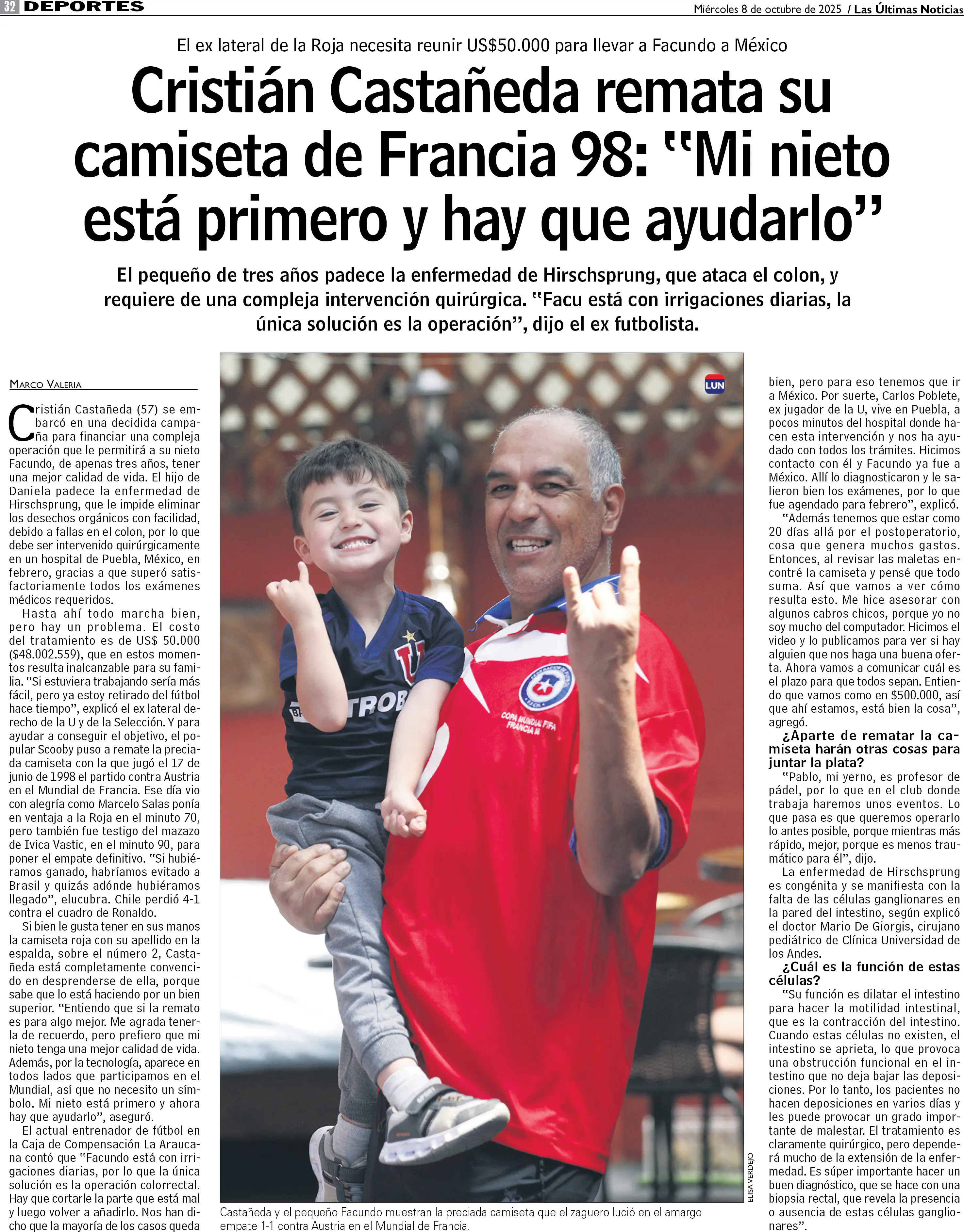 Cristián Castañeda remata su camiseta de Francia 98: "Mi nieto está primero y hay que ayudarlo"