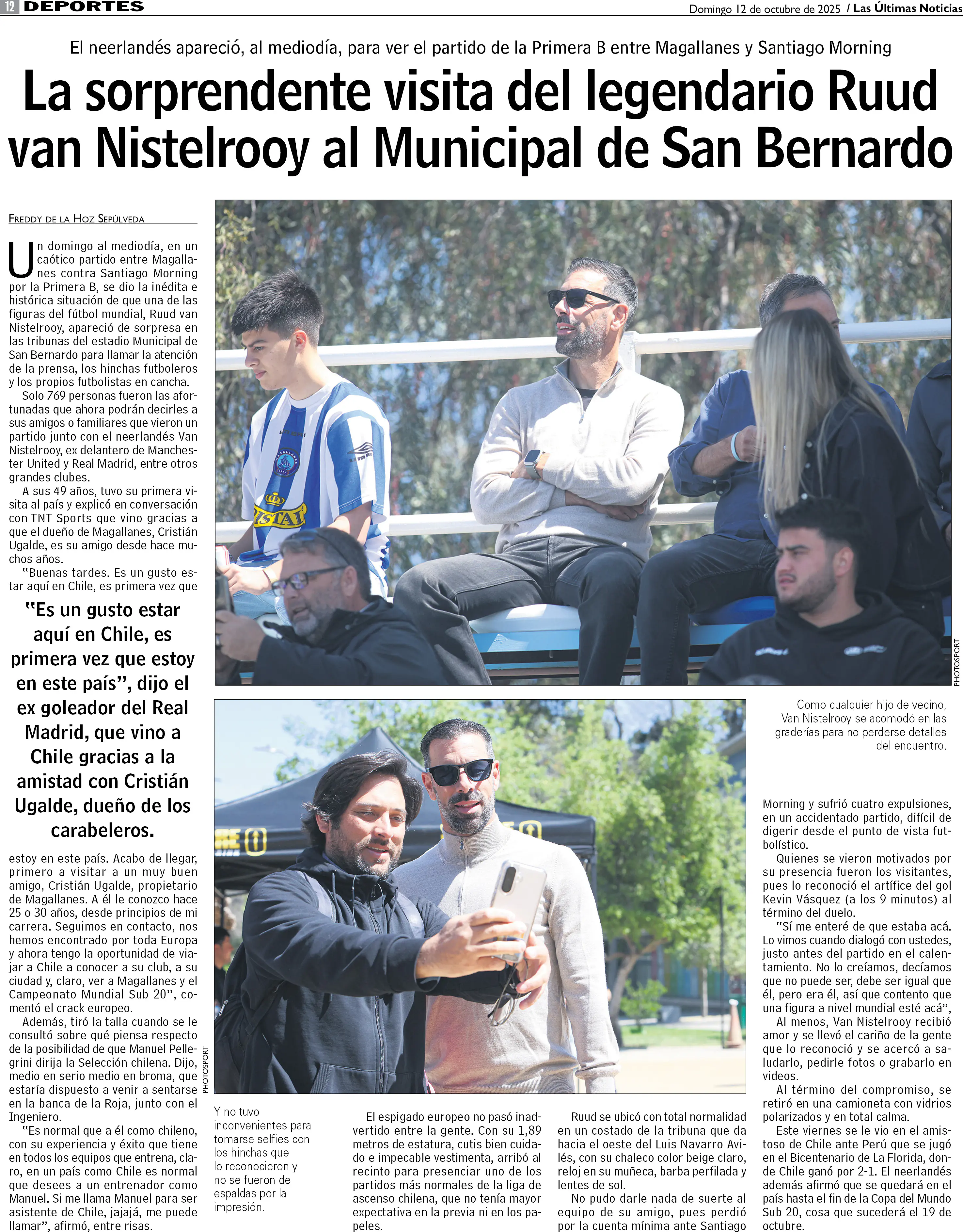 La sorprendente visita del legendario Ruud van Nistelrooy al Municipal de San Bernardo