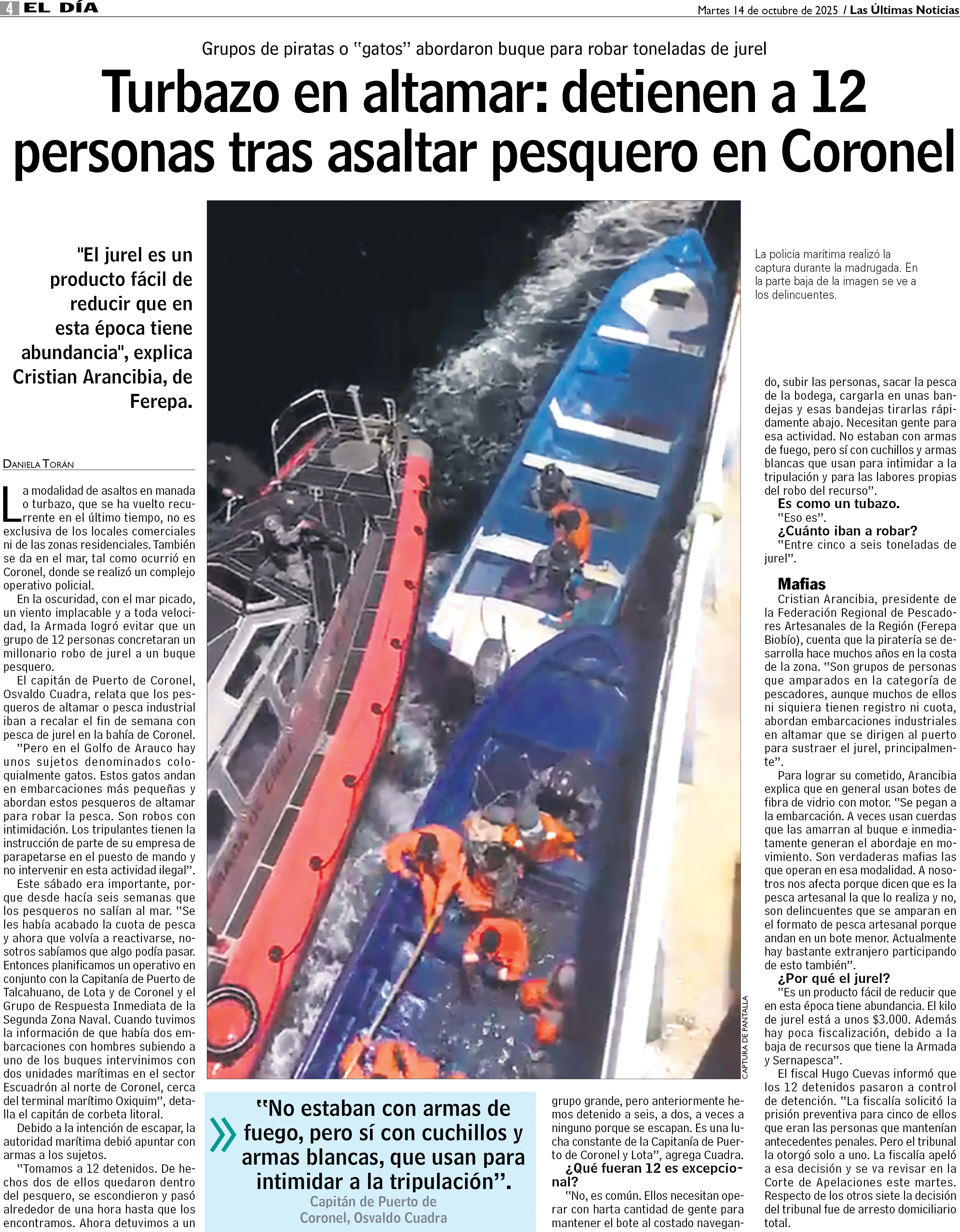 Turbazo en altamar: detienen a 12 personas tras asaltar pesquero en Coronel