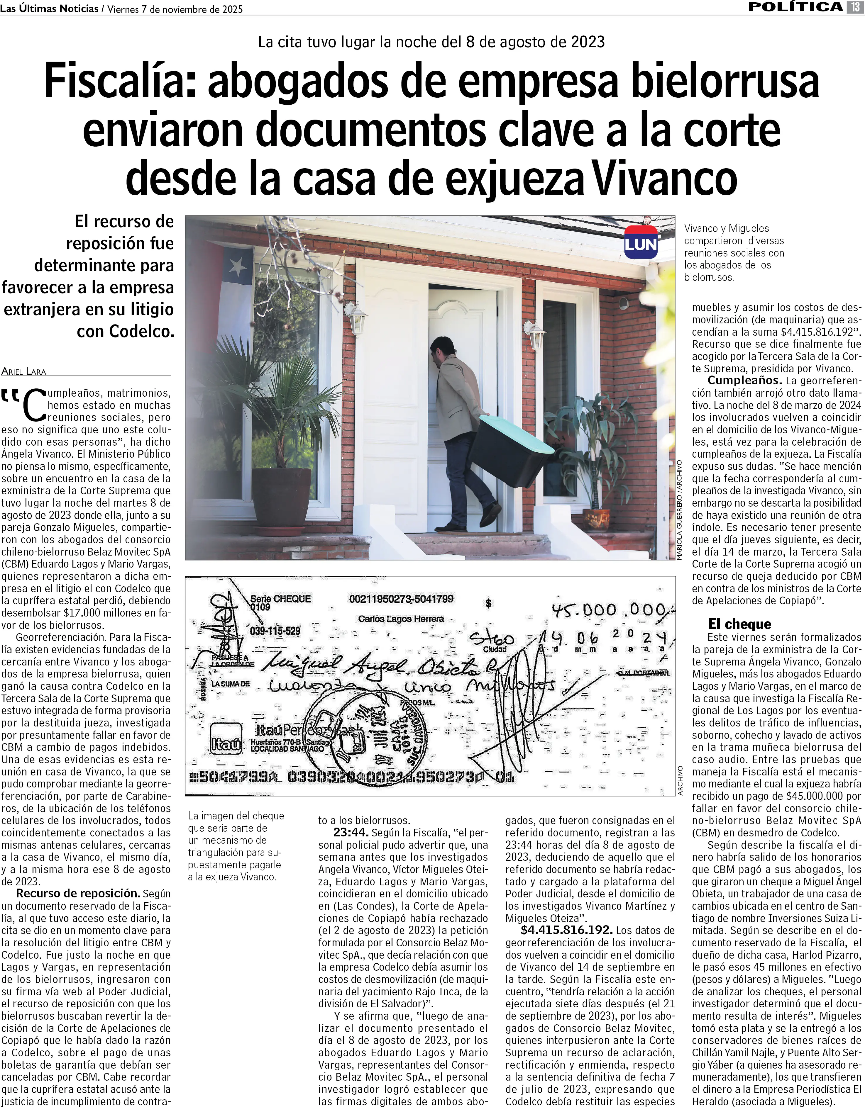 Fiscalía: abogados de empresa bielorrusa enviaron documentos clave a la corte desde la casa de ex jueza Vivanco