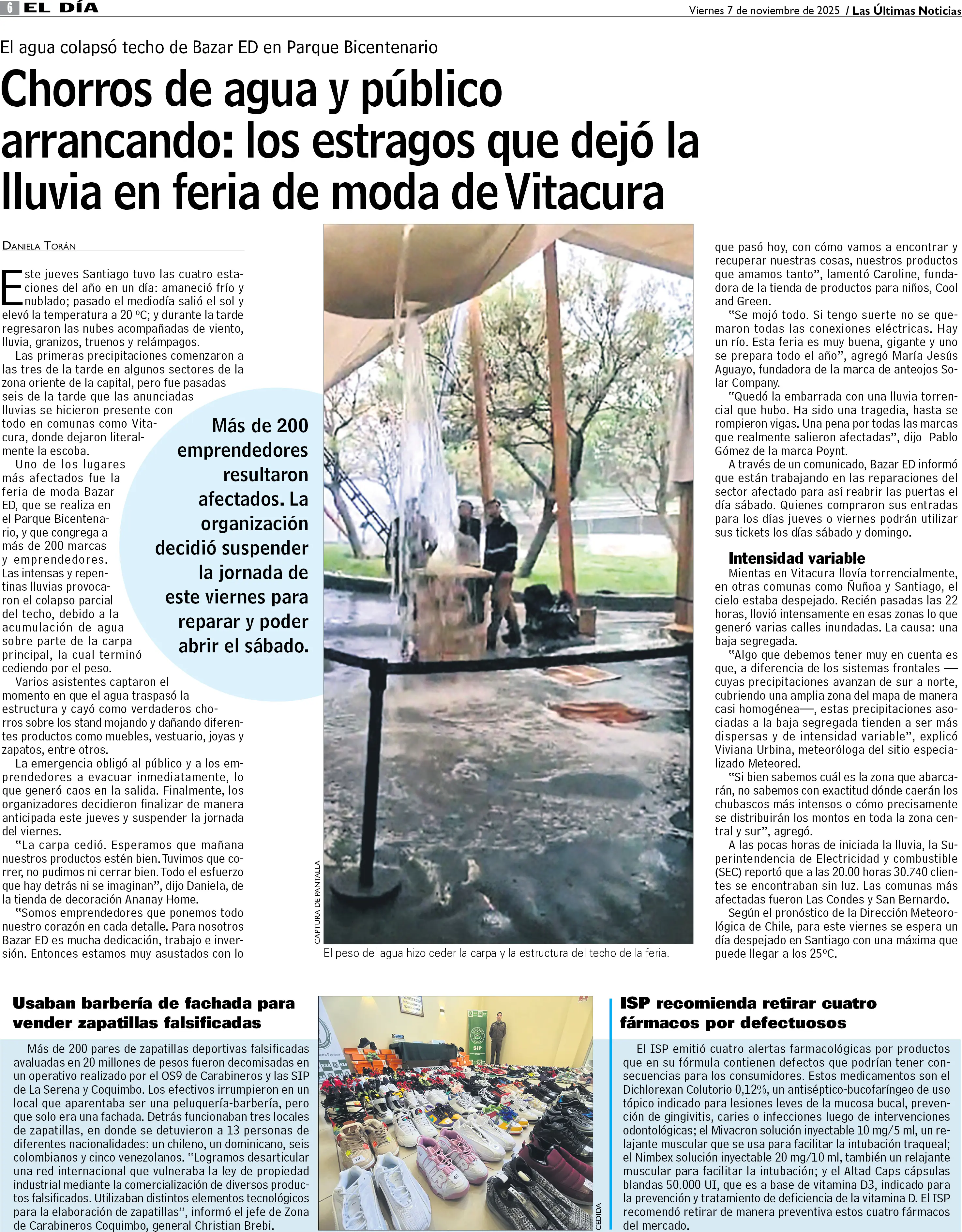 Cascadas y gente arrancando: los estragos que dejó la lluvia en feria de moda en Vitacura