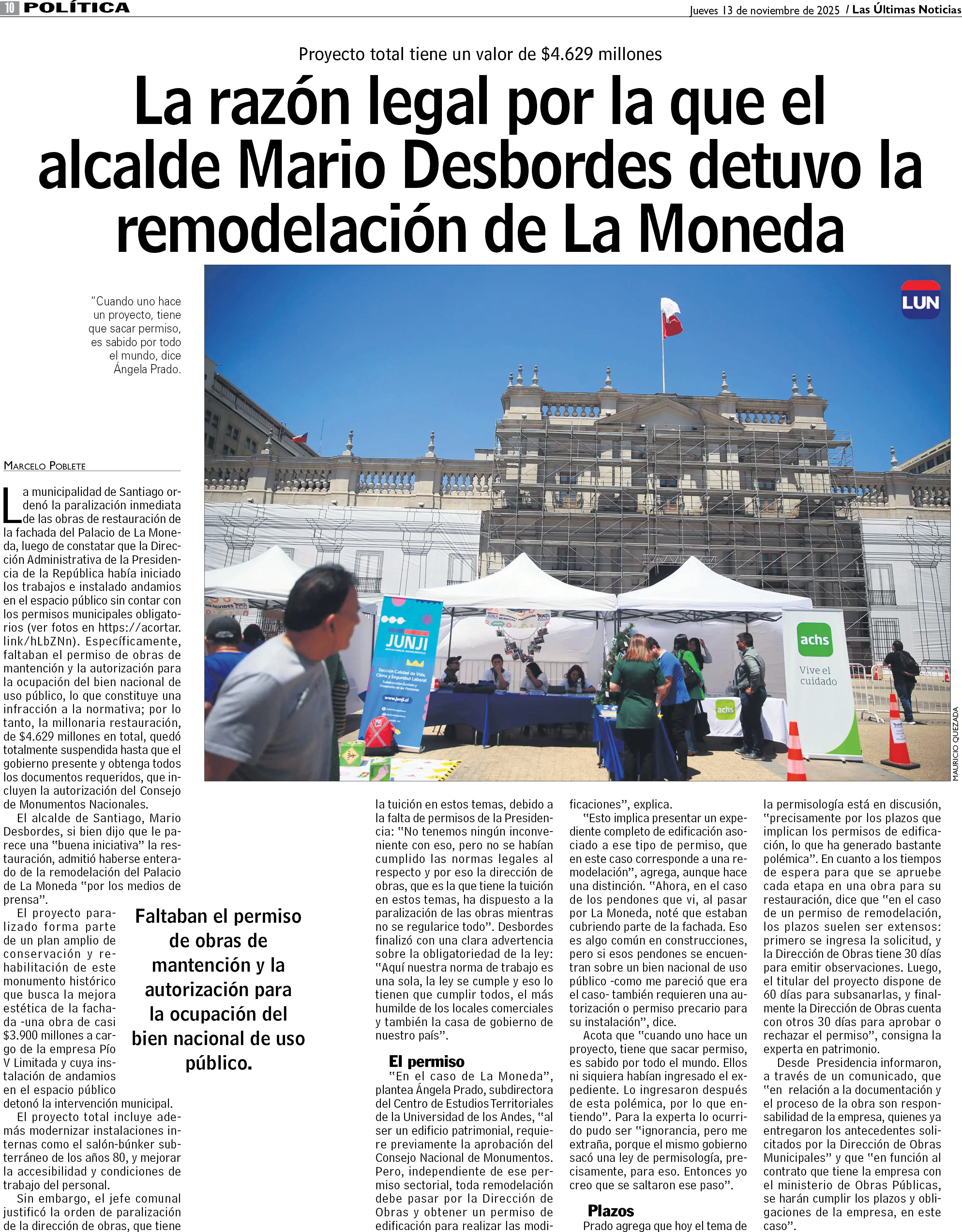 La razón legal por la que el alcalde Mario Desbordes detuvo la remodelación de La Moneda