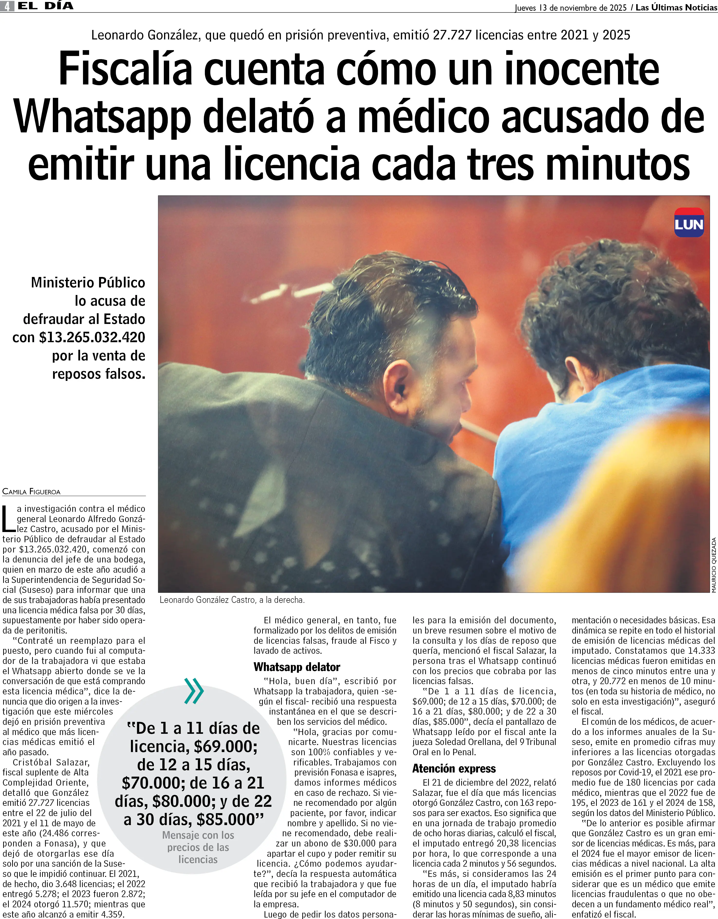 Fiscalía cuenta cómo un inocente Whatsapp delató a médico acusado de emitir una licencia cada tres minutos
