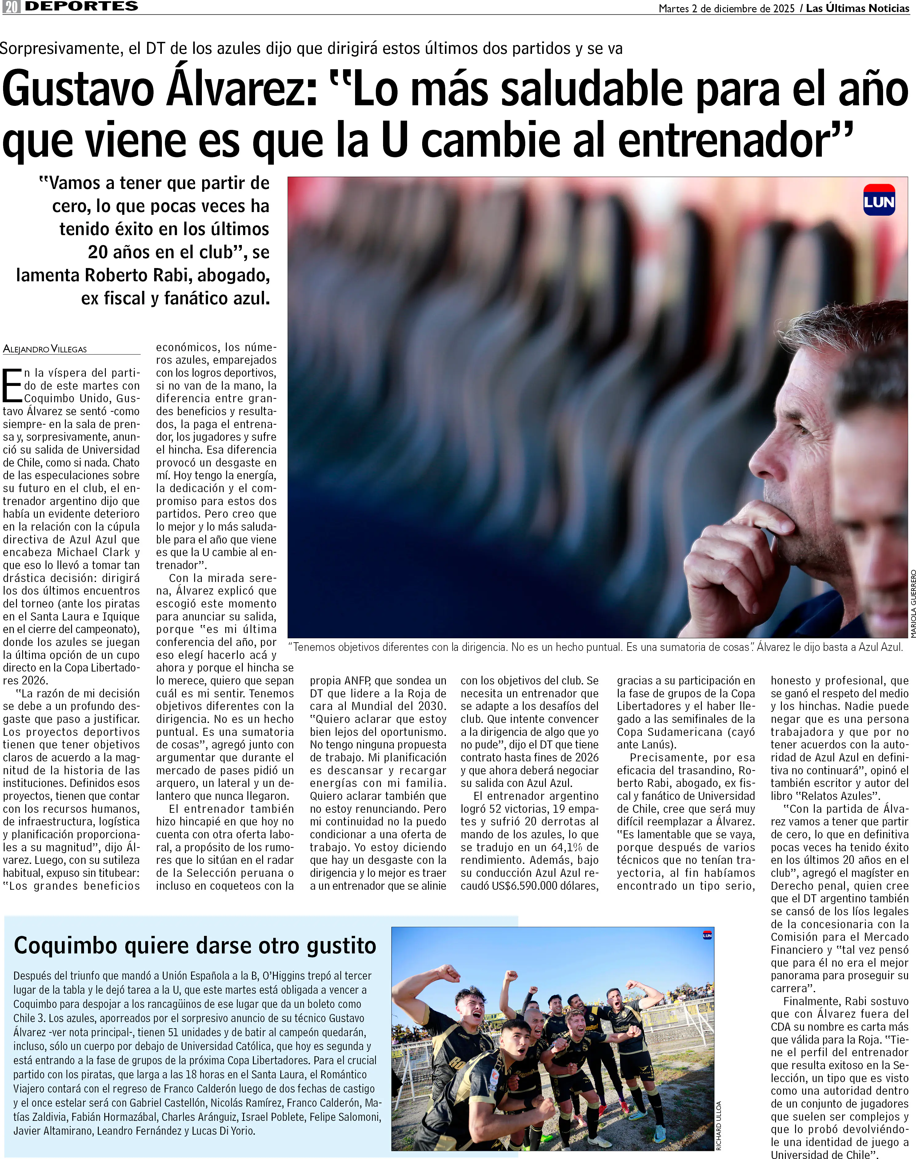 Gustavo Álvarez: "Lo más saludable para el año que viene es que la U cambie al entrenador"