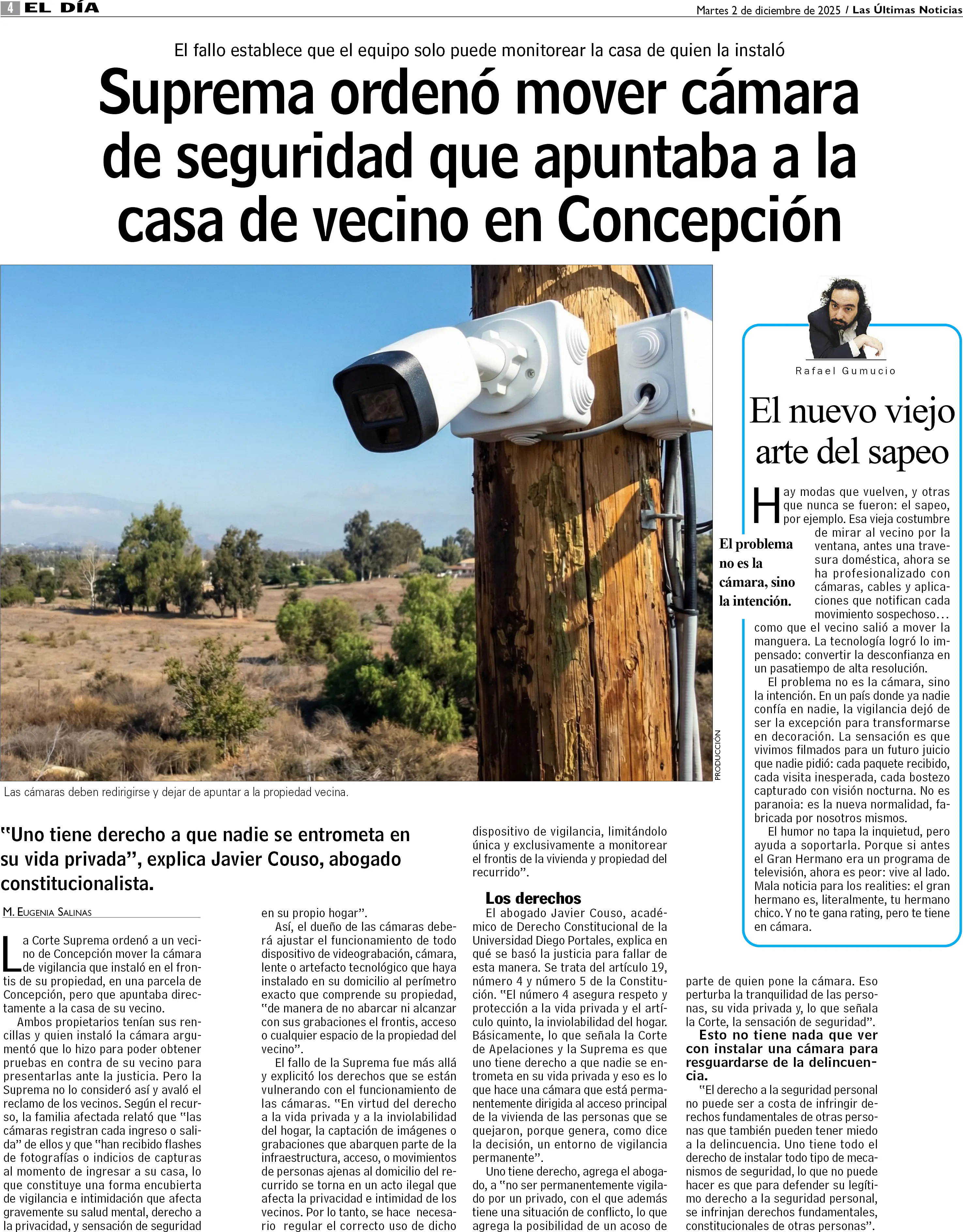 Suprema ordenó mover cámara de seguridad que apuntaba a la casa de vecino en Concepción