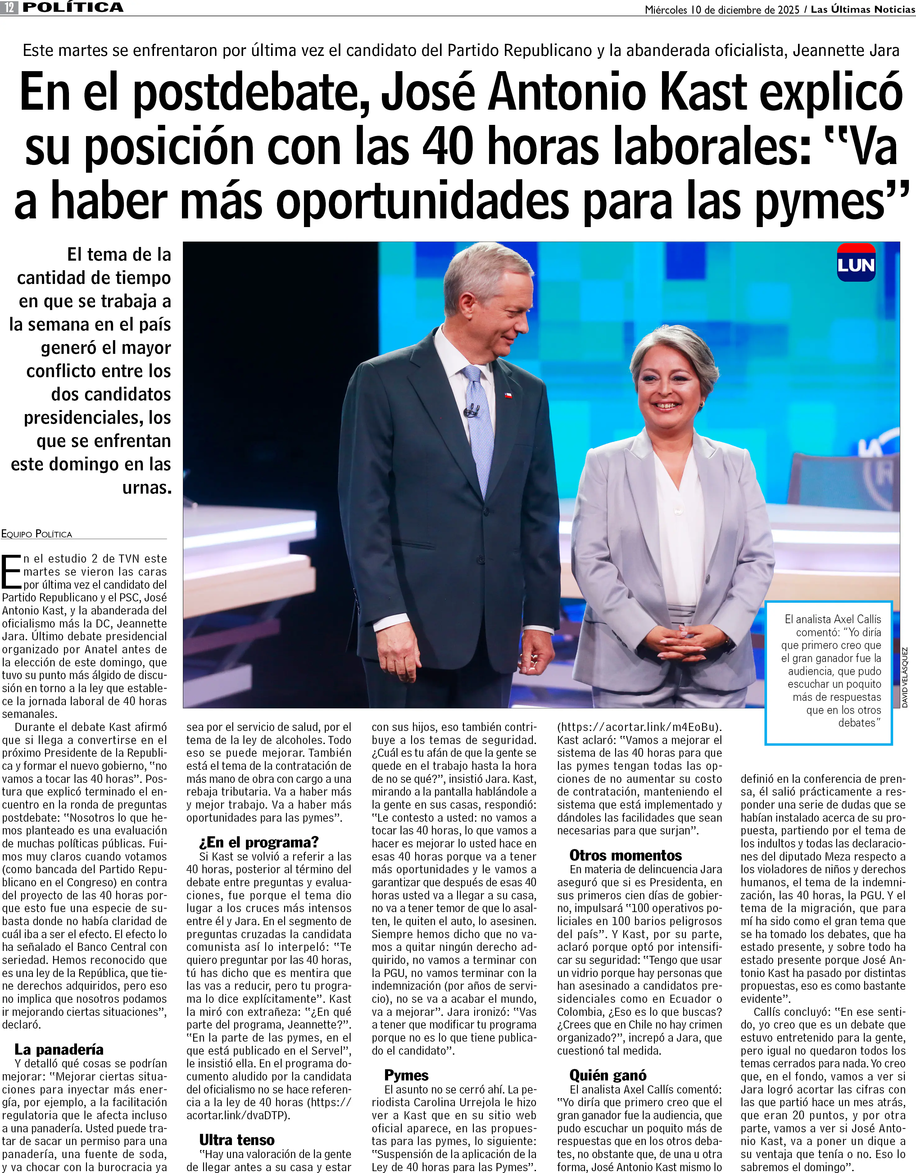En el postdebate, José Antonio Kast explicó su posición con las 40 horas laborales: "Va a haber más oportunidades para las pymes"