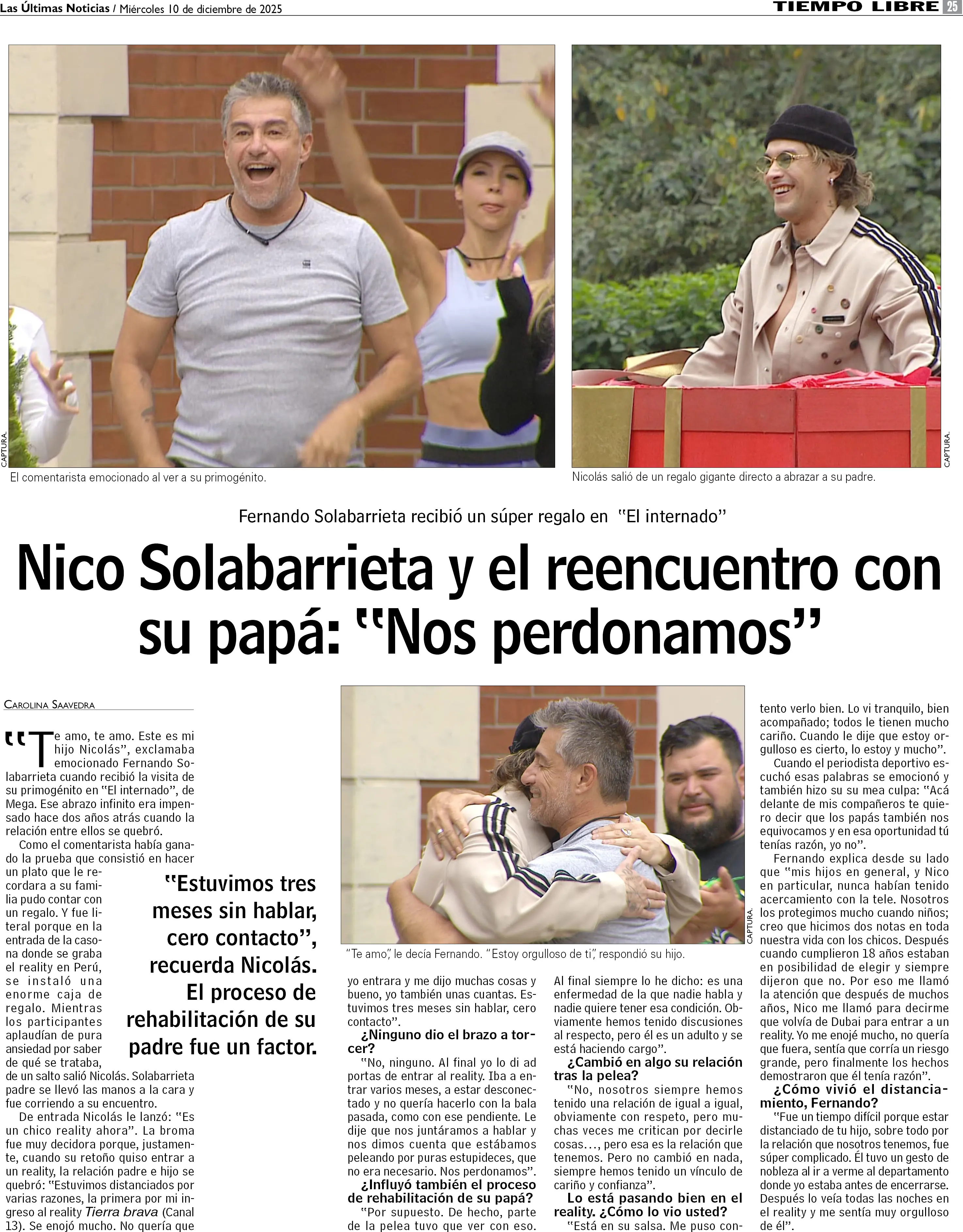 Nico Solabarrieta fue a ver a su papá: "Nos perdonamos"