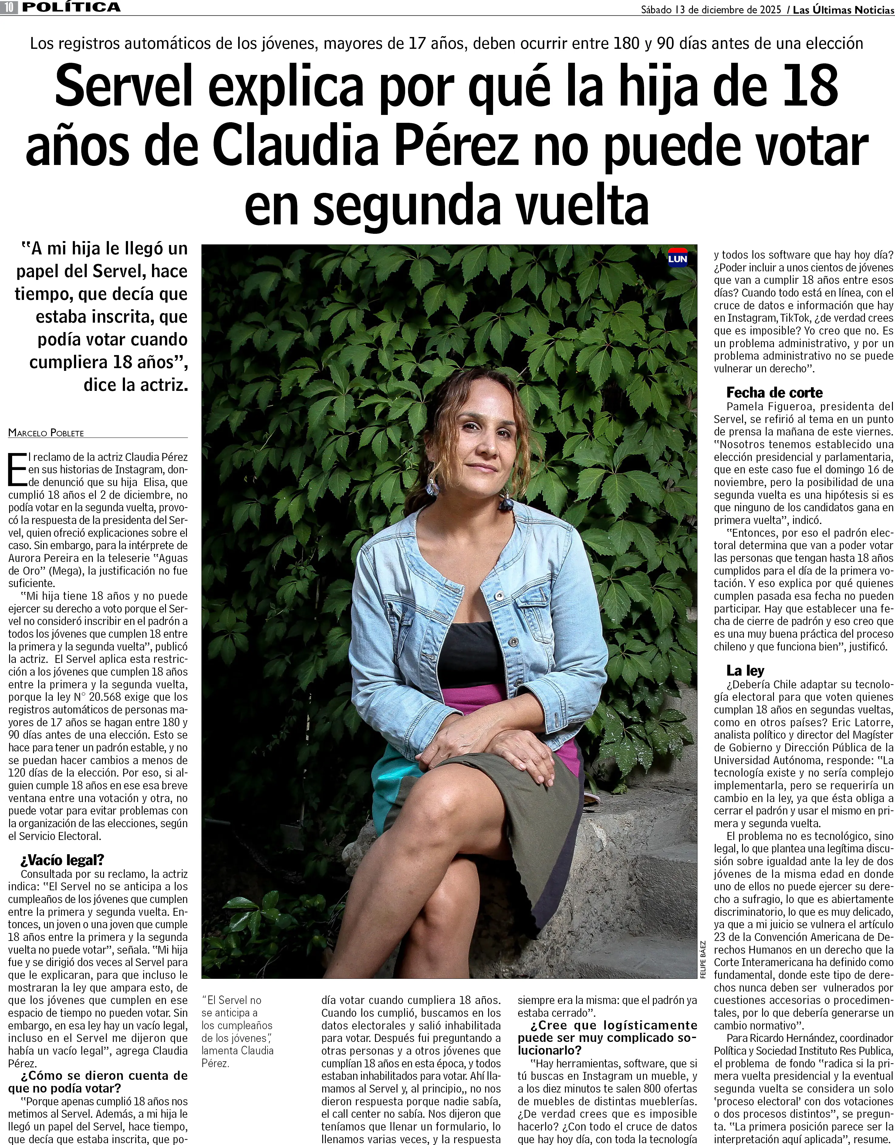 Servel explica por qué hija de 18 años de la actriz Claudia Pérez no puede votar
