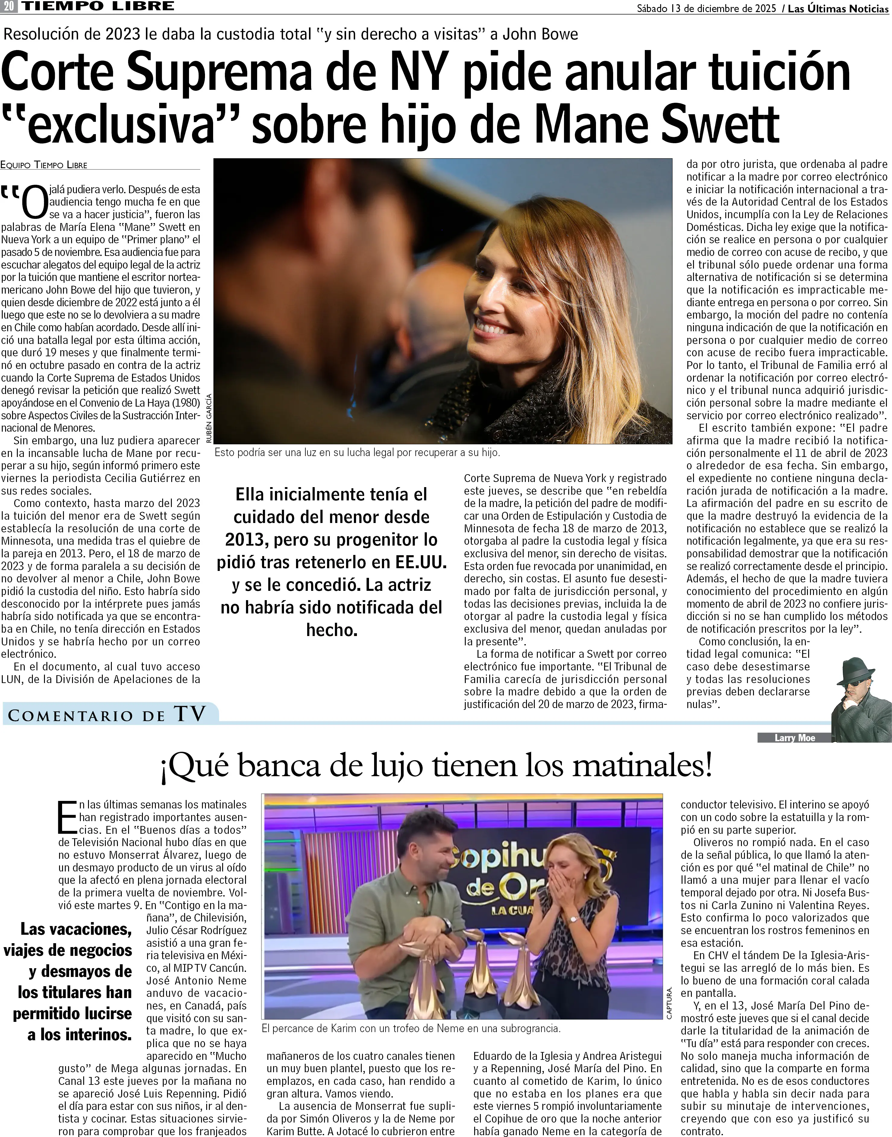 Corte Suprema de NY pide anular tuición "exclusiva" de hijo de Mane Swett