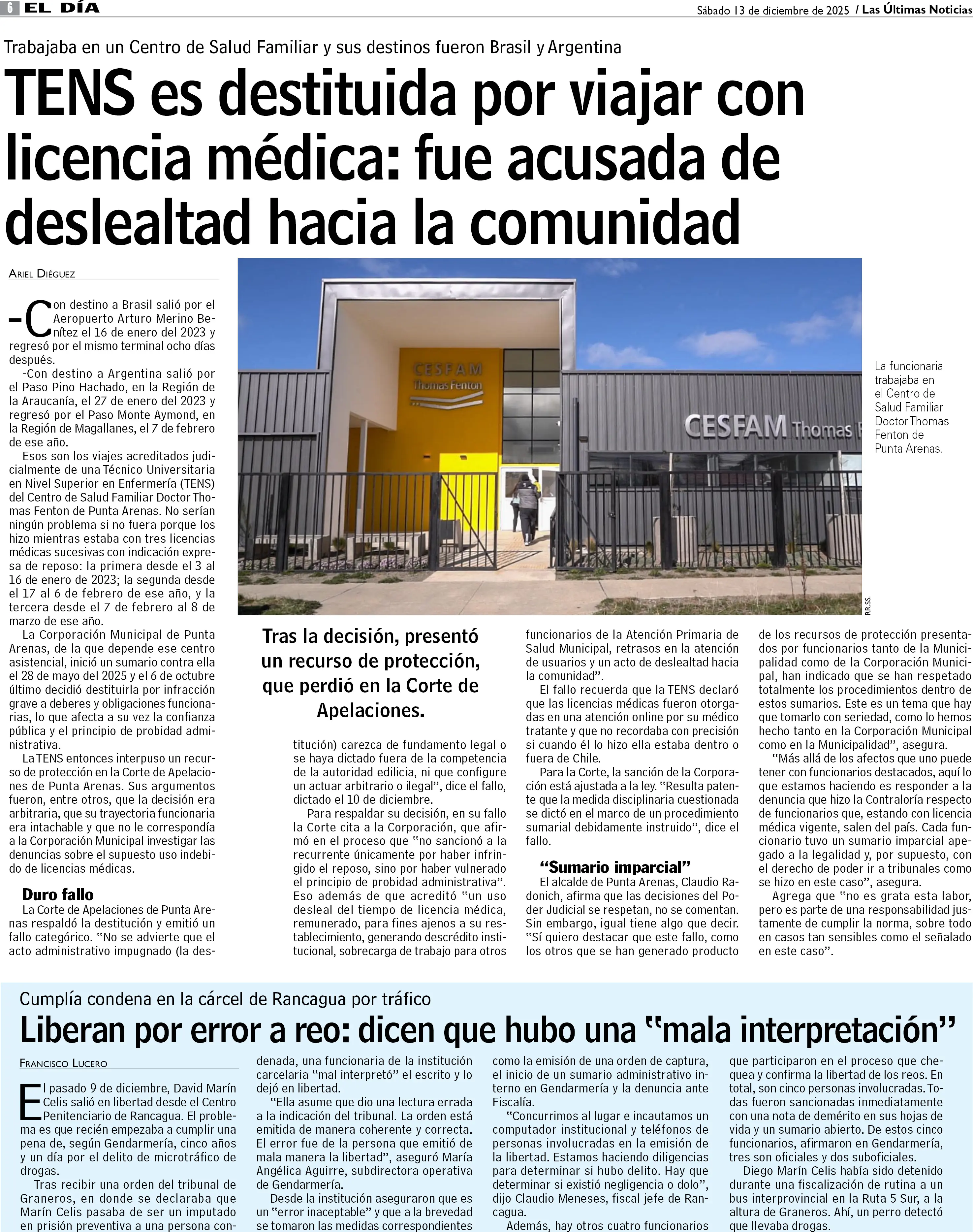 Corte apoya despido de Tens que viajó al extranjero con licencia médica