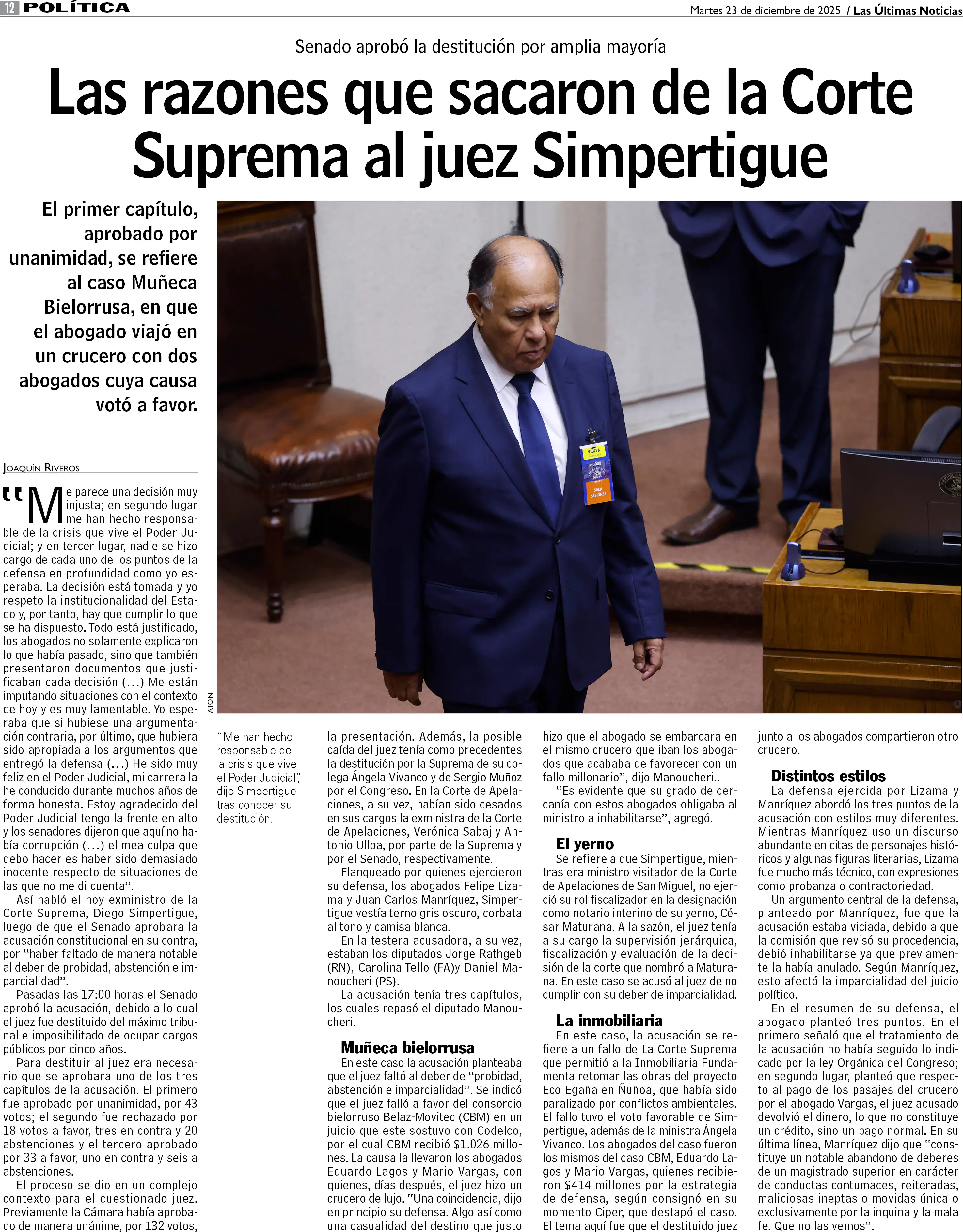 Las razones que sacaron de la Corte Suprema al juez Simpertigue