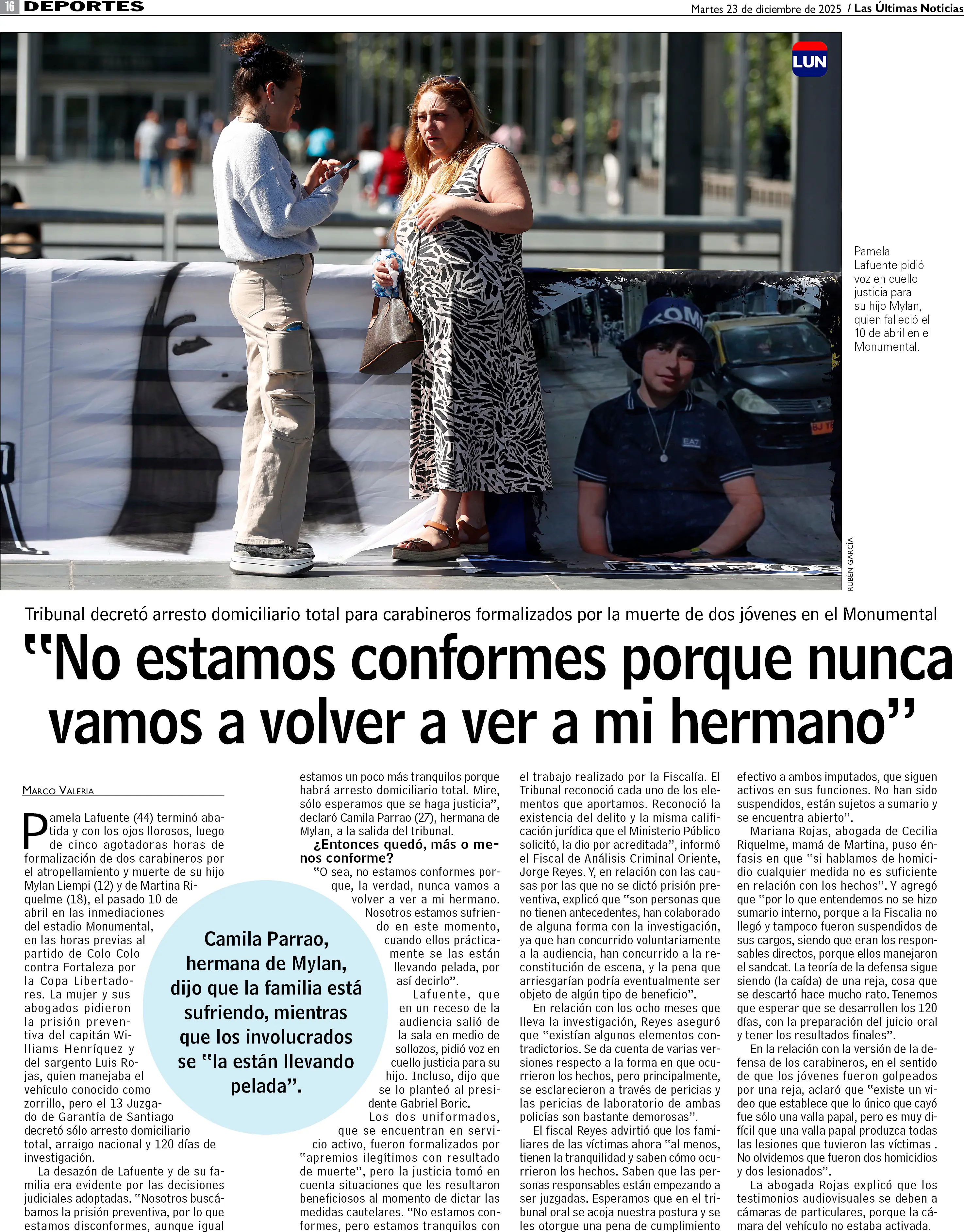 "No estamos conformes porque nunca vamos a volver a ver a mi hermano"