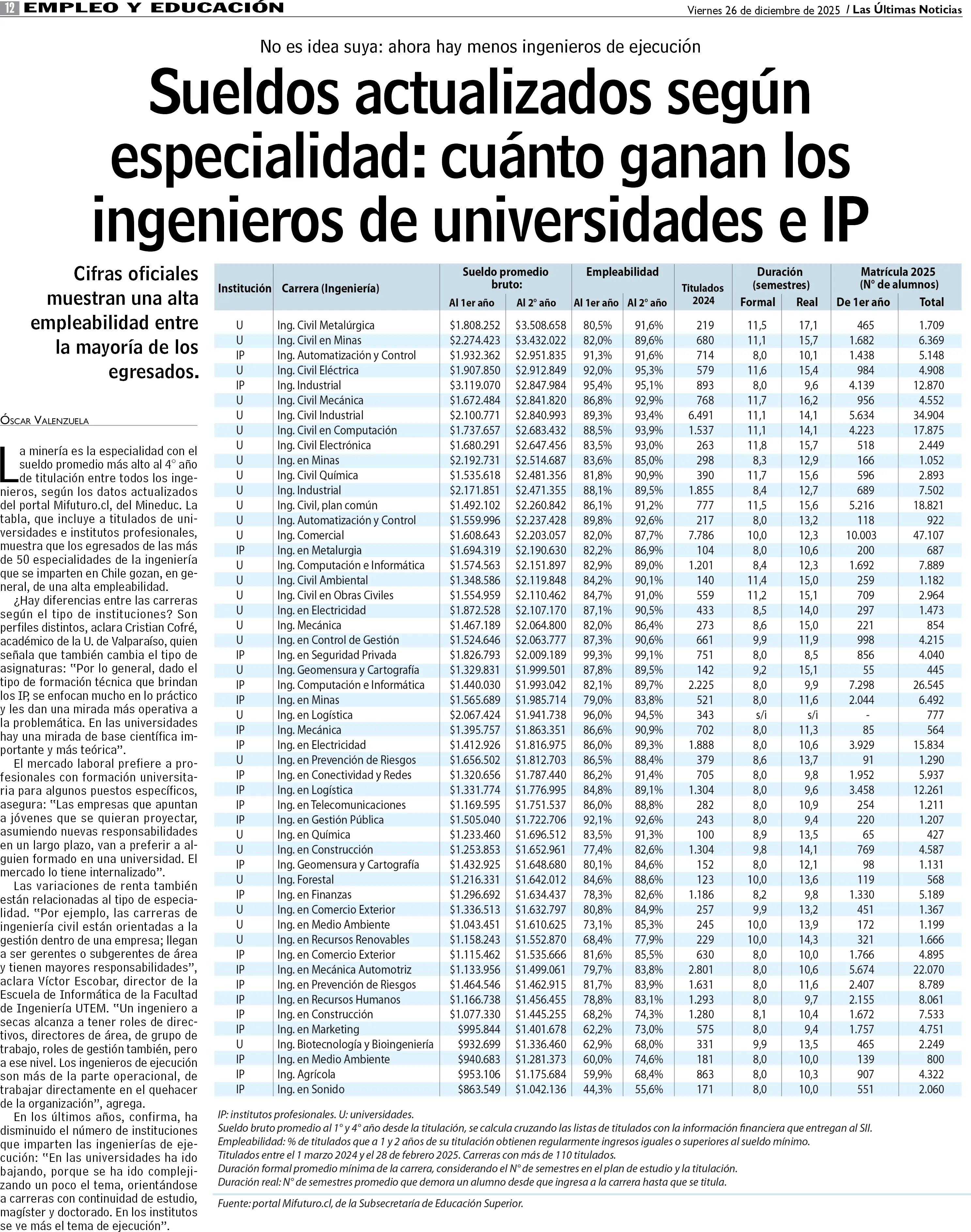 Sueldos actualizados según especialidad: cuánto ganan los ingenieros de universidades e IP