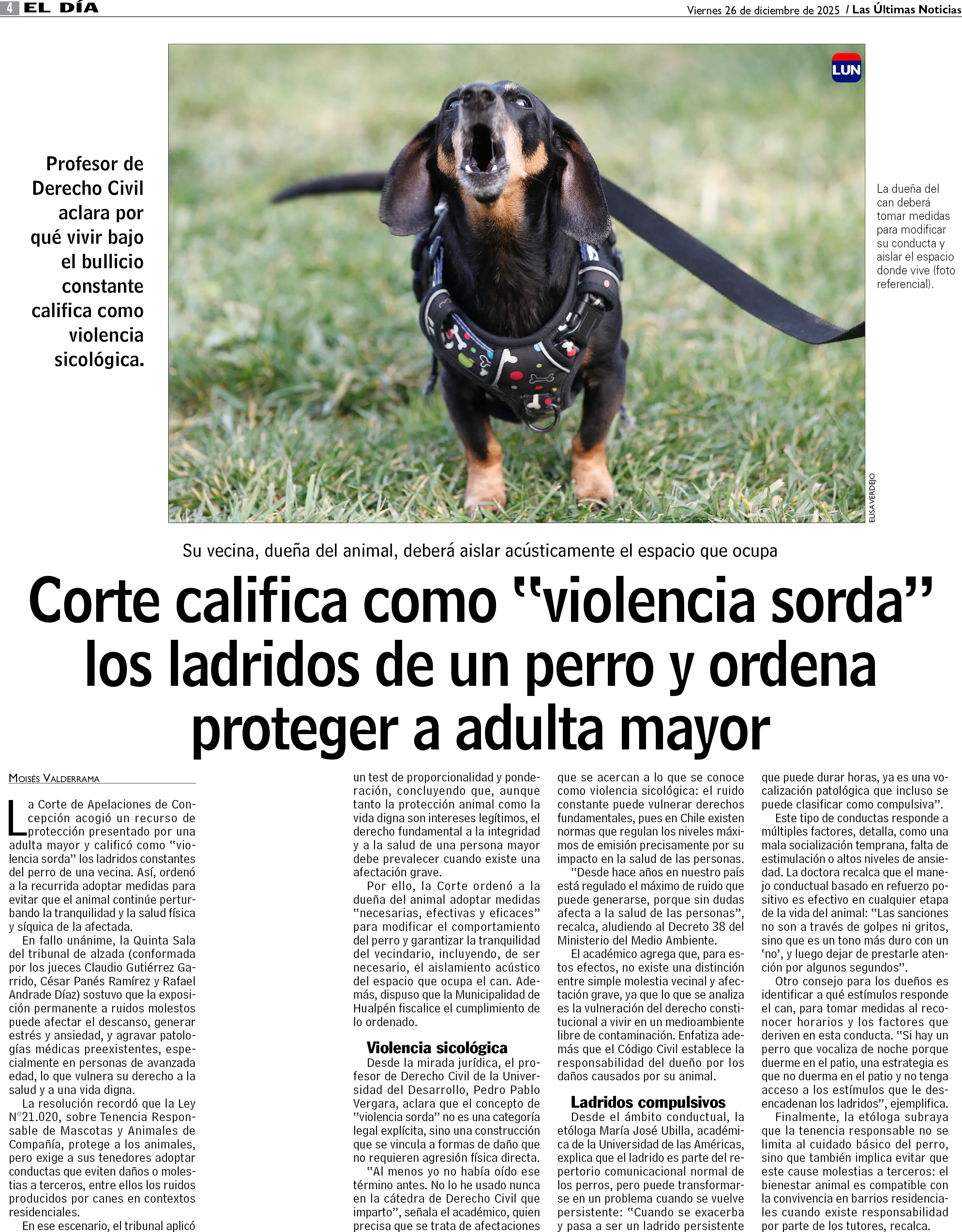Corte califica como "violencia sorda" los ladridos de un perro y ordena proteger a adulta mayor