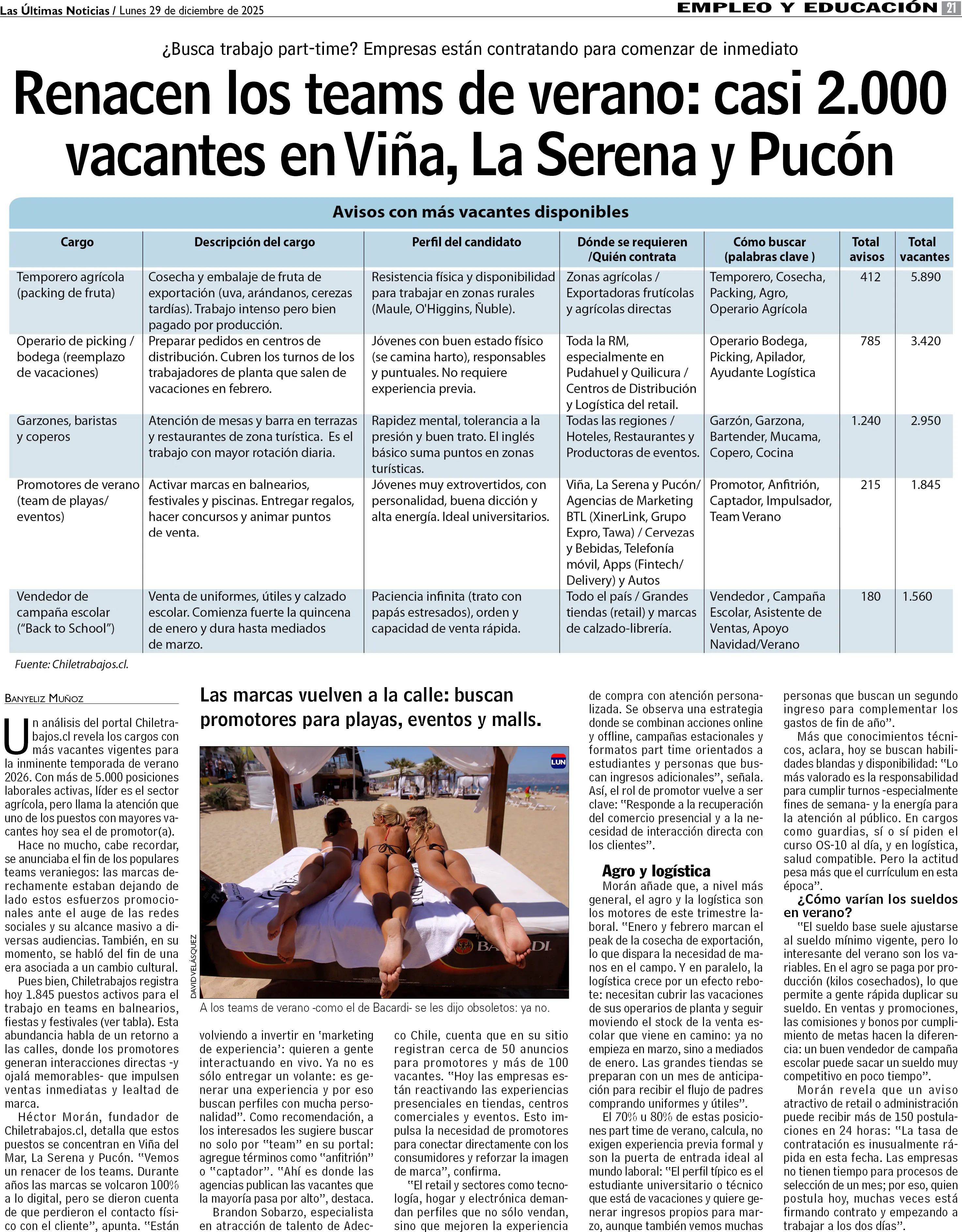 Renacen los teams de verano: casi 2.000 vacantes en Viña, La Serena y Pucón