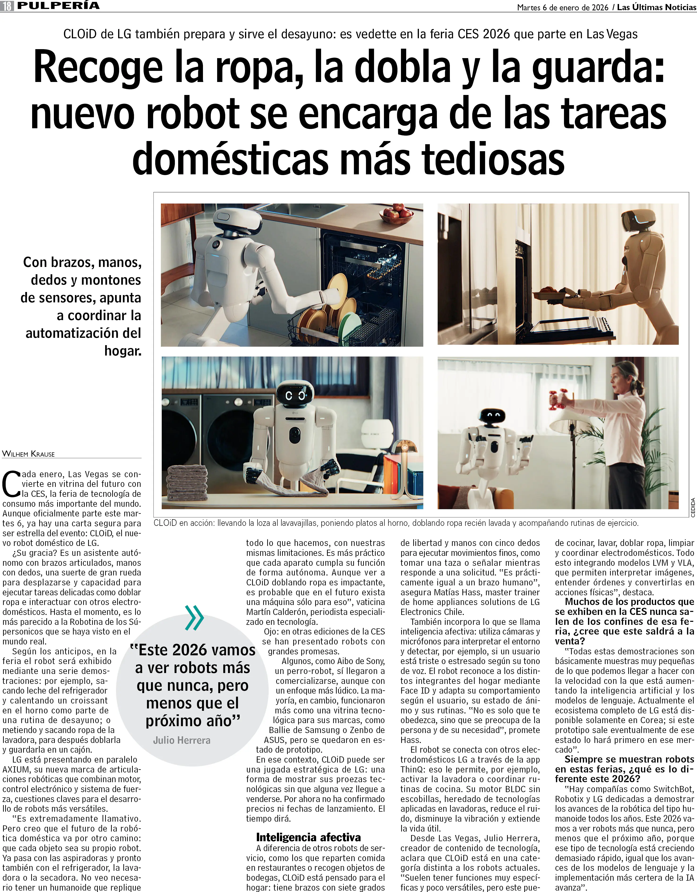 LG muestra en Las Vegas robot que dobla y guarda la ropa y mete comida al horno
