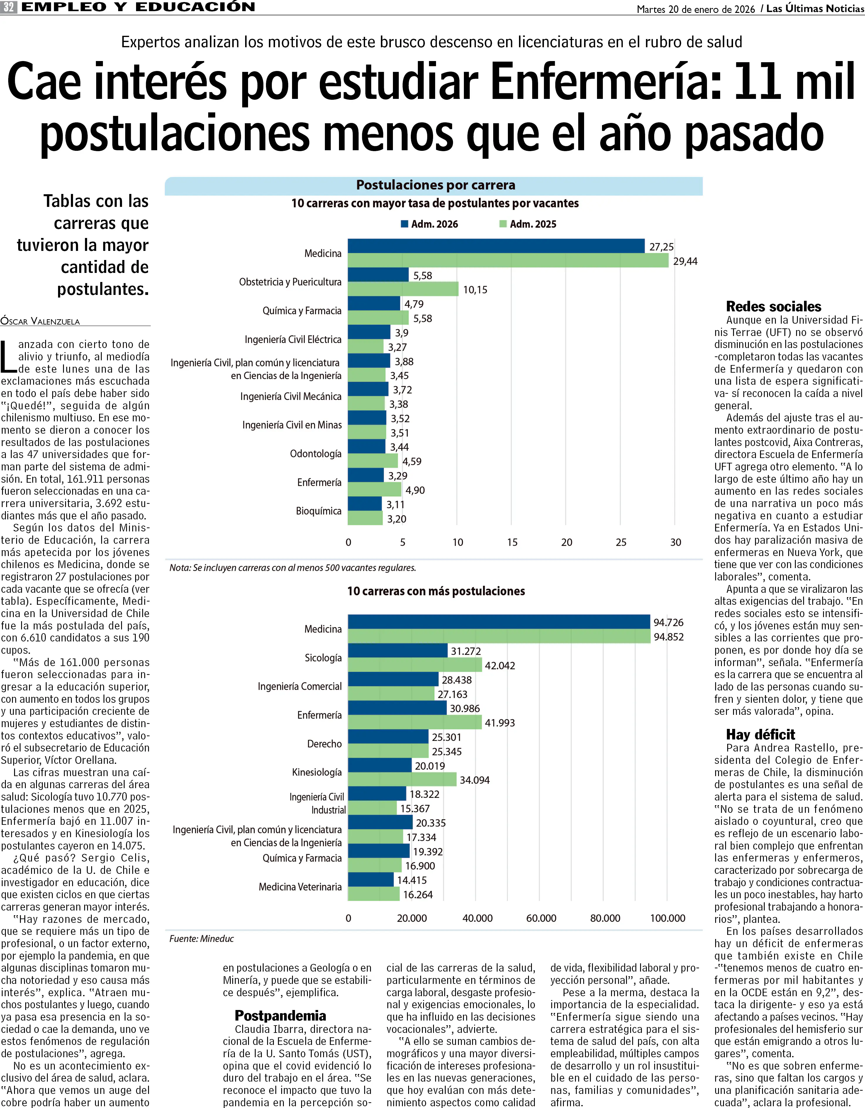 Cae interés por estudiar Enfermería: 11 mil postulaciones menos que el año pasado
