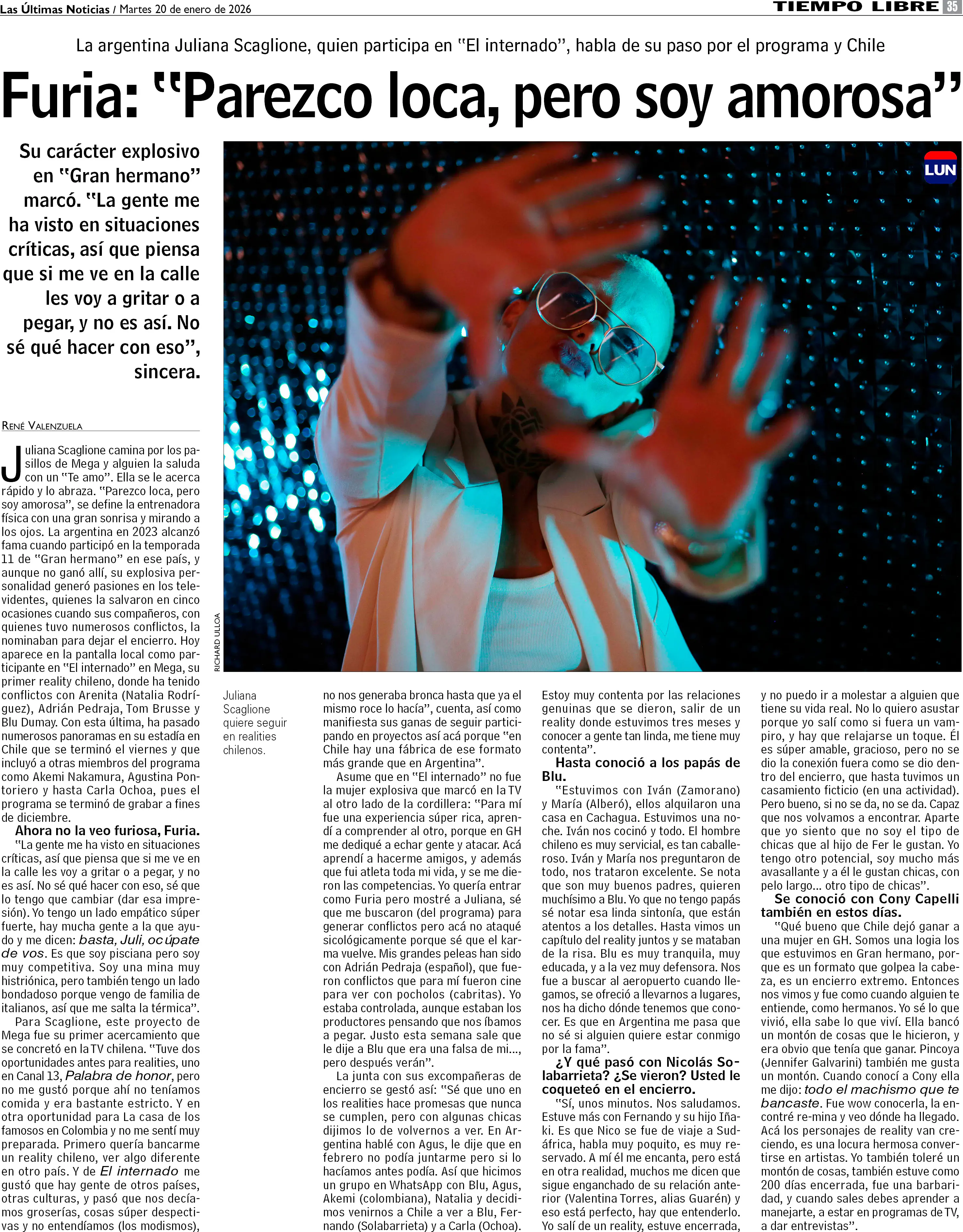 Juliana "Furia" Scaglione: "Parezco loca, pero soy amorosa"