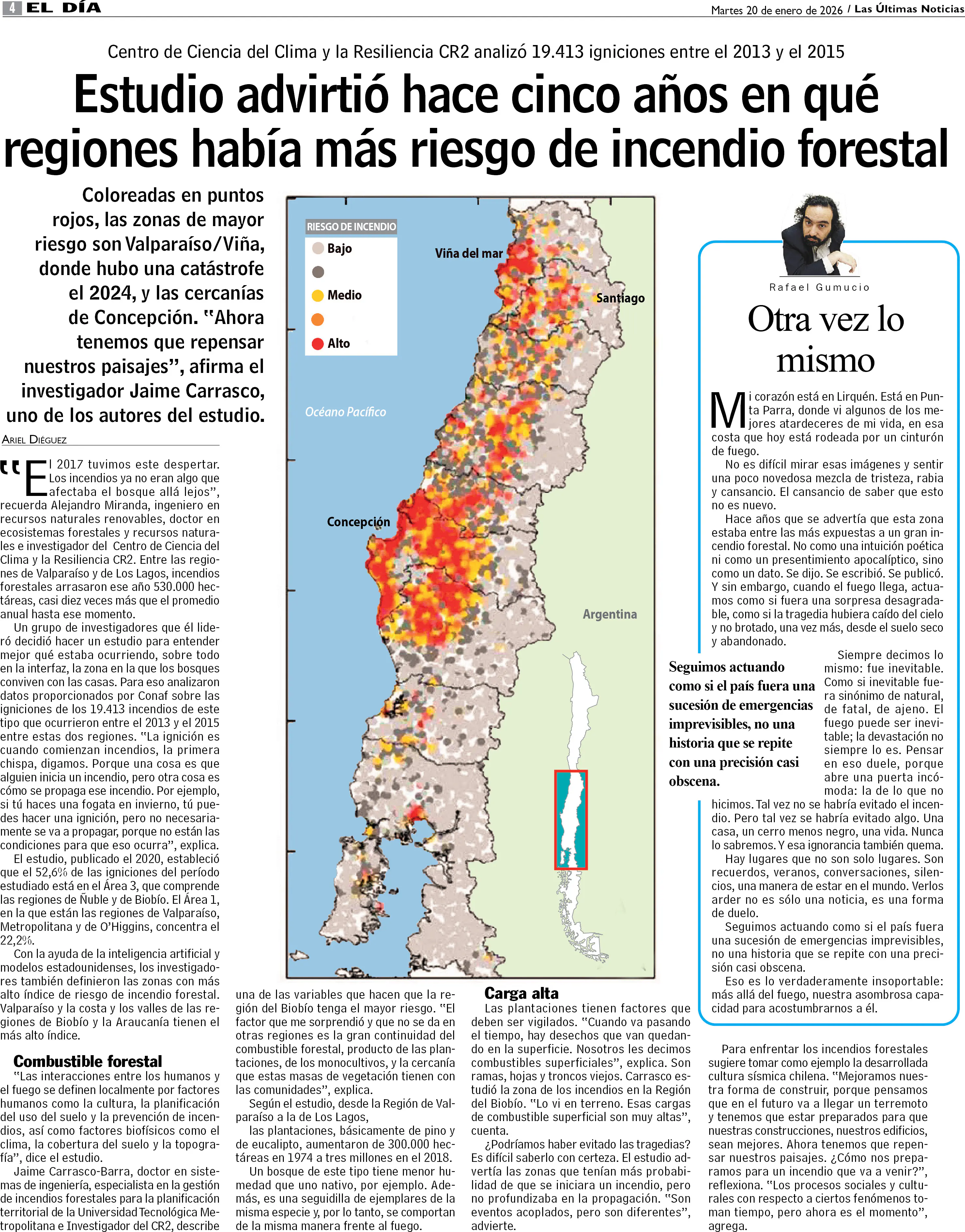 Estudio advirtió hace cinco años en qué regiones había más riesgo de incendio forestal