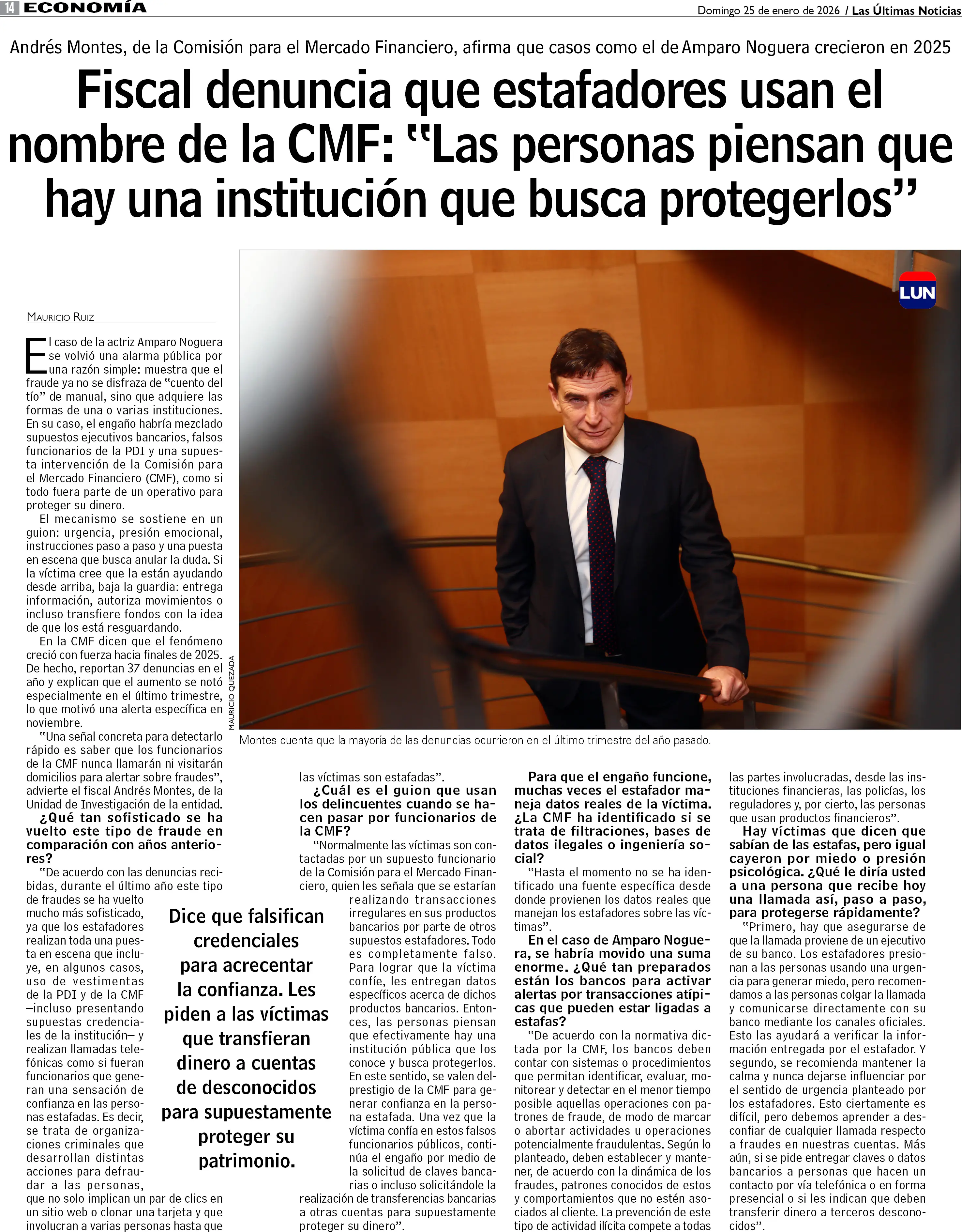 Fiscal Montes denuncia frecuente uso de la CMF en estafas como la de Amparo Noguera