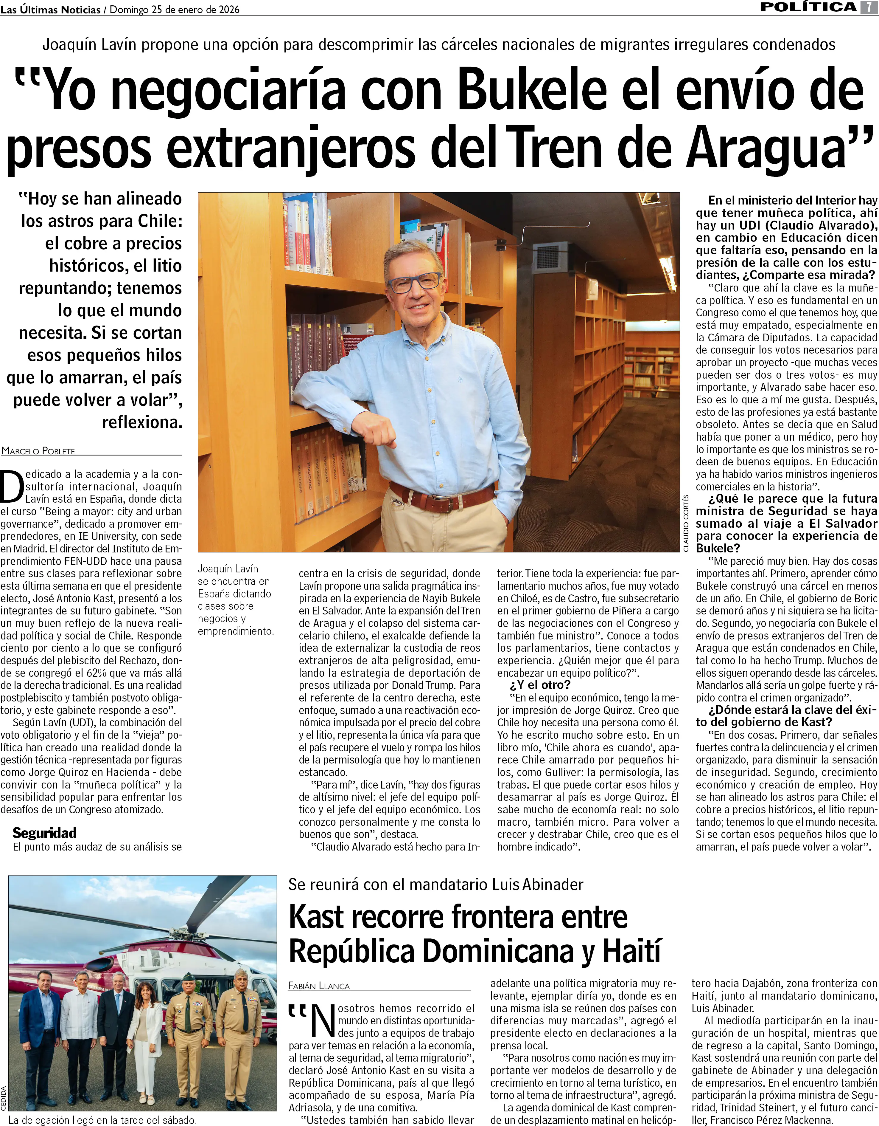 Lavín: "Negociaría con Bukele el envío de presos del Tren de Aragua"
