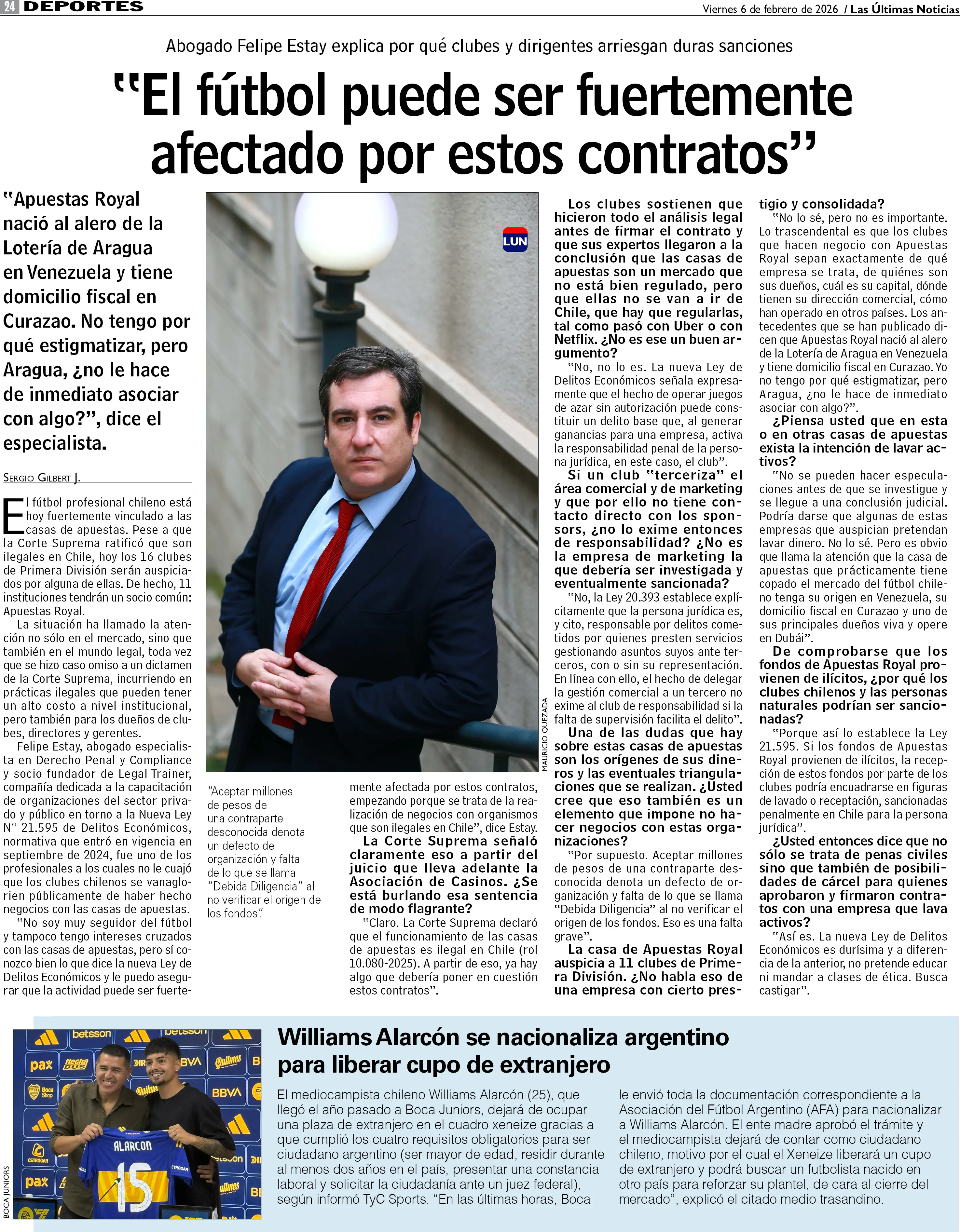 "El fútbol puede ser fuertemente afectado por estos contratos"