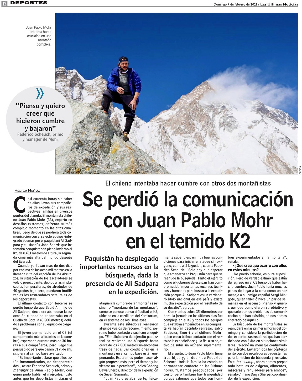 Se perdió la comunicación con Juan Pablo Mohr en el temido K2