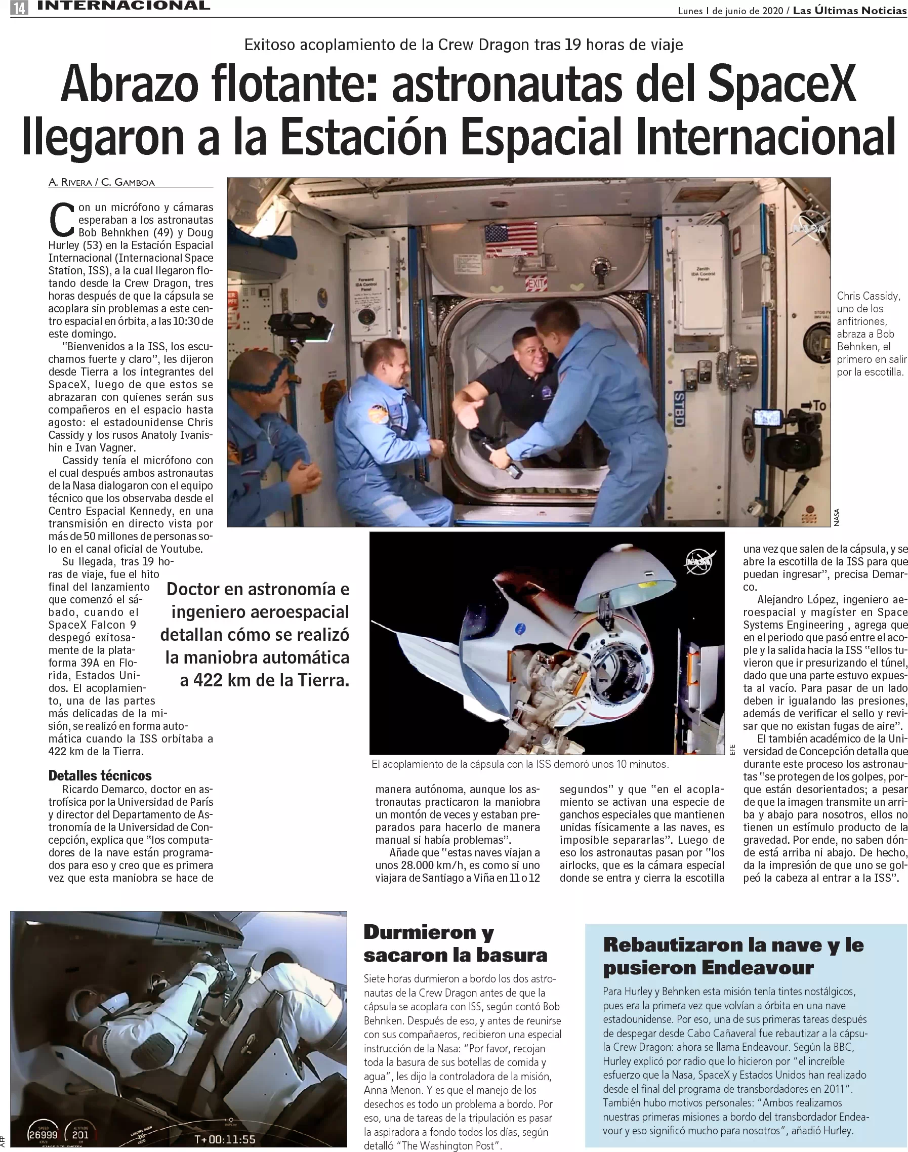 Abrazo flotante: astronautas del SpaceX llegaron a la Estación Espacial Internacional