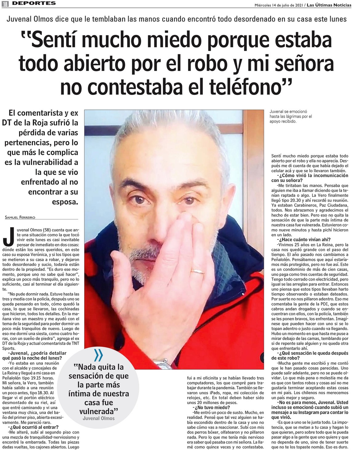 Juvenal Olmos relata asalto a su casa: "Sentí mucho miedo por mi señora"