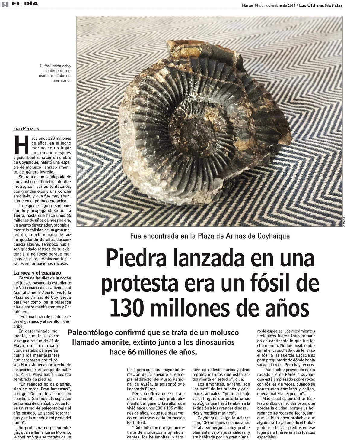 Piedra lanzada en una protesta era un fósil de 130 millones de años