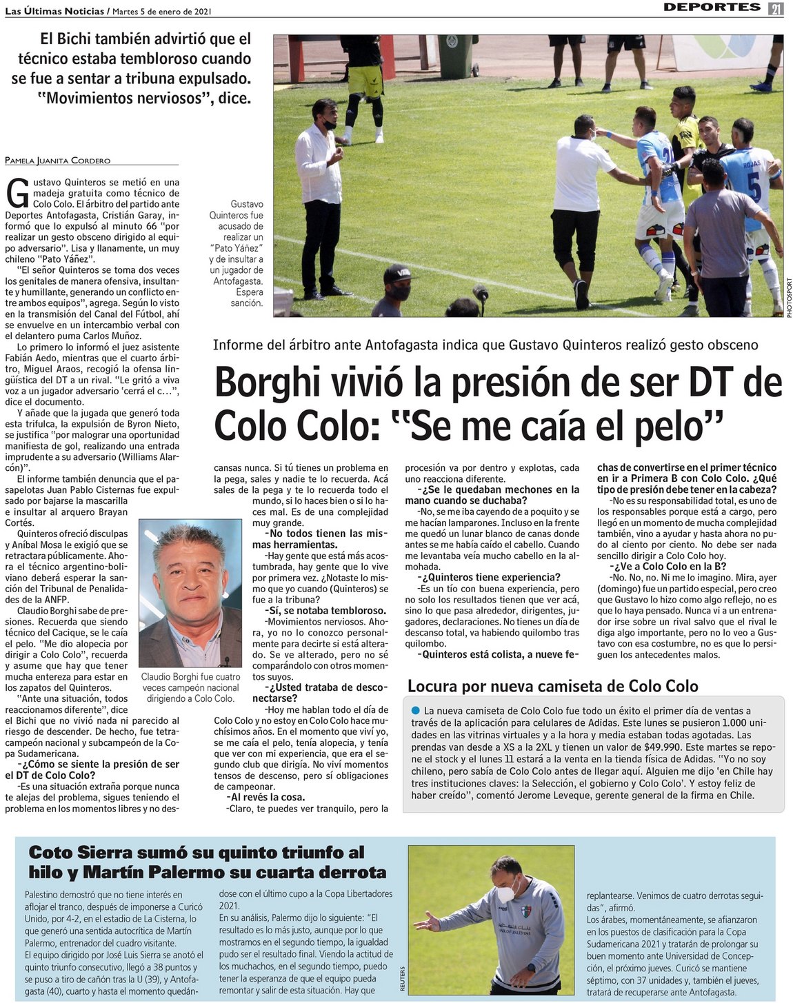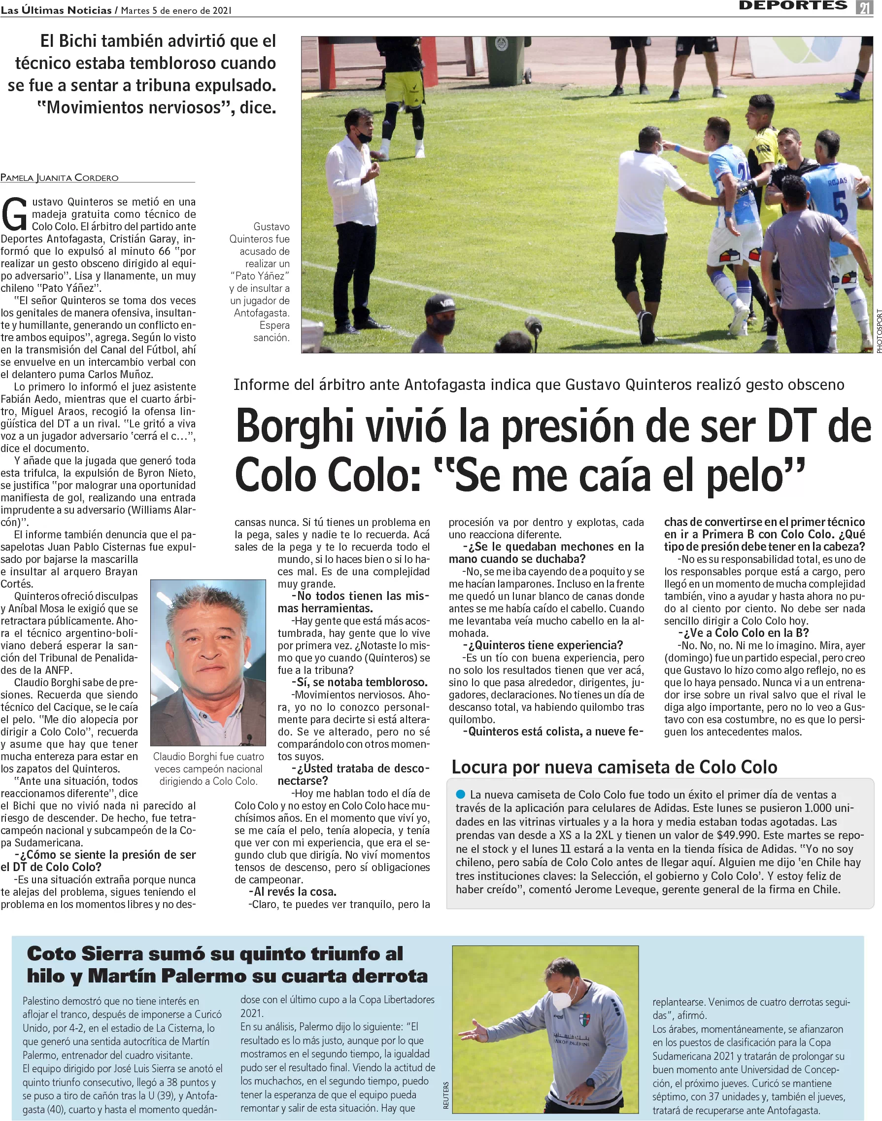 Borghi vivió la presión de ser DT de Colo Colo: "Se me caía el pelo"