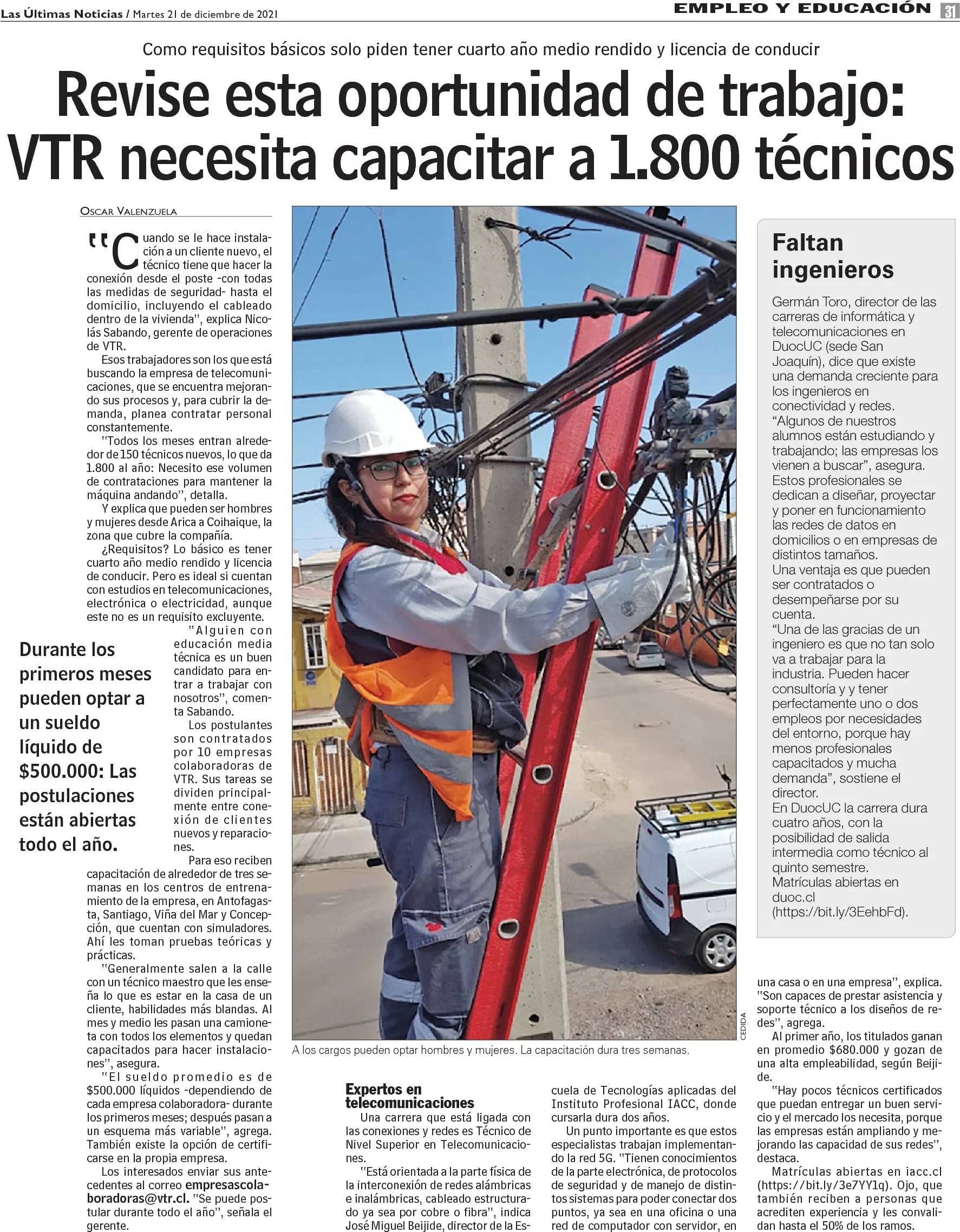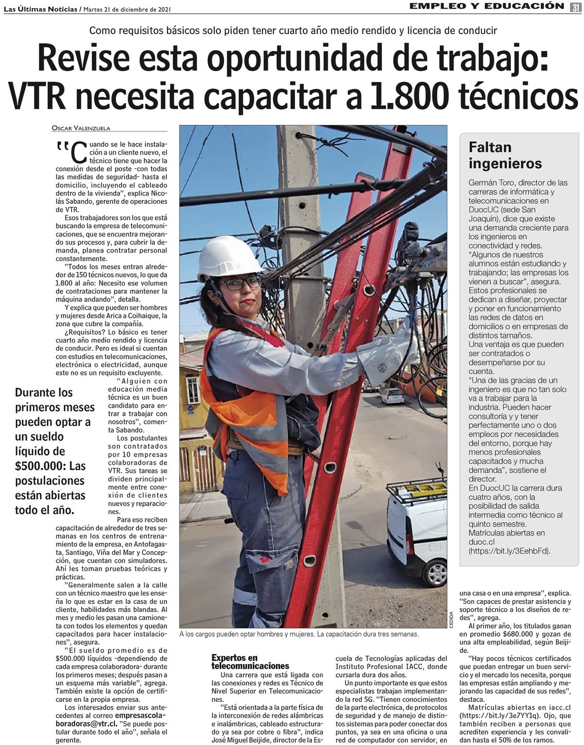 Revise esta oportunidad de trabajo: VTR necesita capacitar a 1.800 técnicos