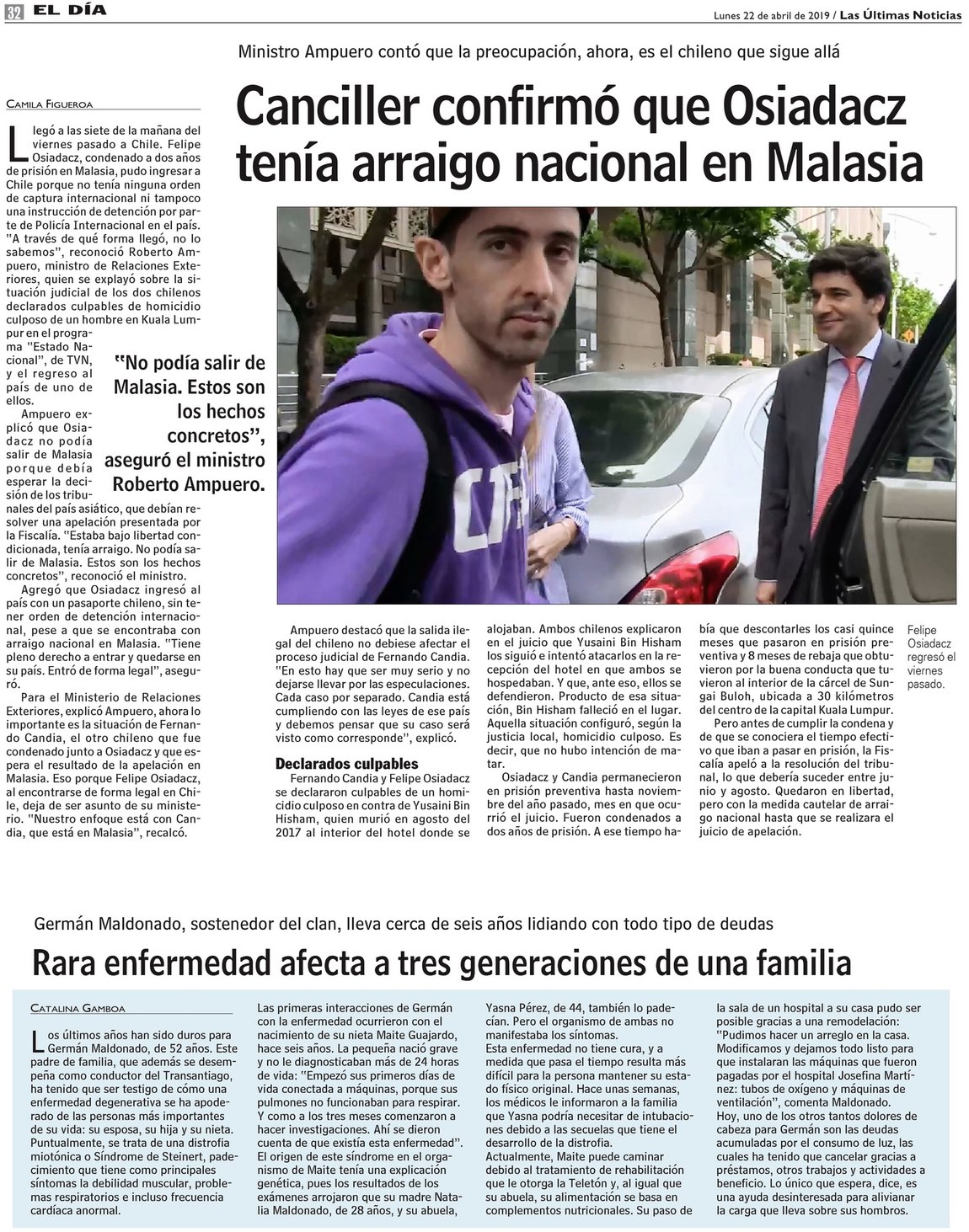 Canciller confirmó que Osiadacz tenía arraigo nacional en Malasia
