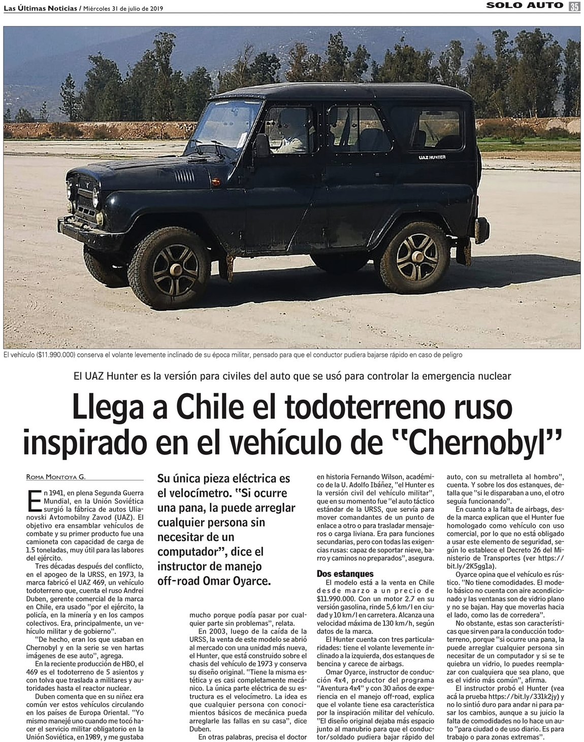 Llega a Chile el todoterreno ruso inspirado en el vehículo de "Chernobyl"