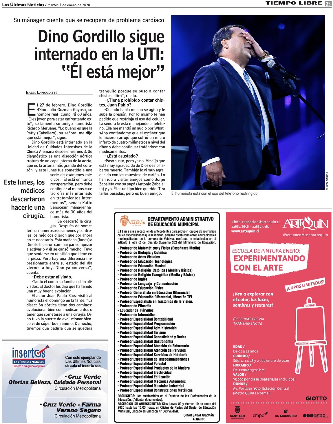 Dino Gordillo sigue internado en la UTI: "Él está mejor"